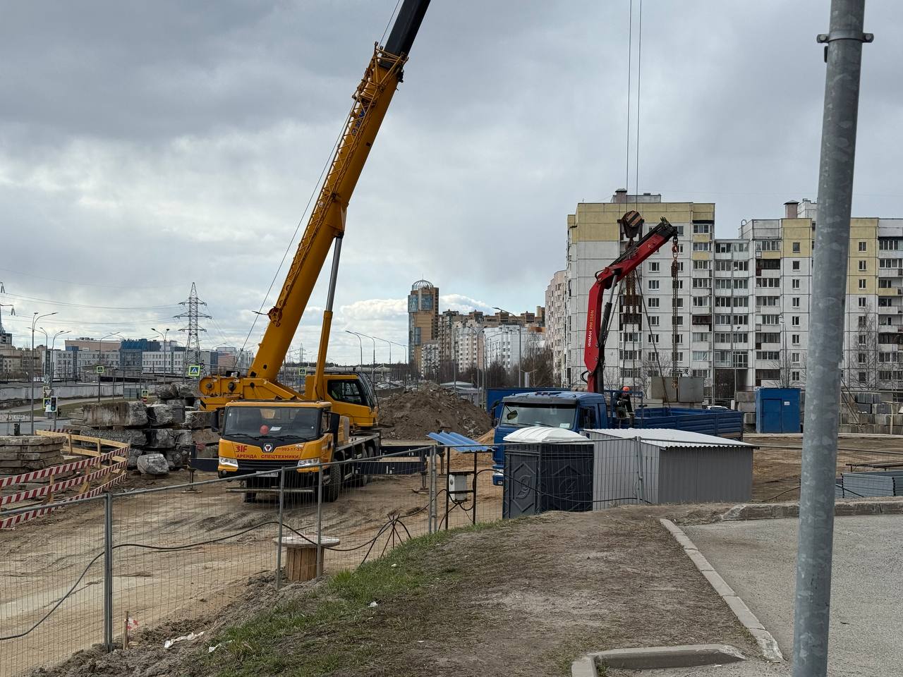 На Каменке вчера появился серый полый цилиндр и пару бытовок.