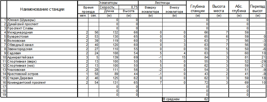 Из полученных результатов меня удивила глубина Бухарестской и Международной - с учётом ожидаемого подъёма линии на южном направлении я рассчитывал получить где-то 50-55 м. Причём и "Проспект Славы", судя по публикуемым здесь сведениям, тоже будет с глубиной 55-60 м.