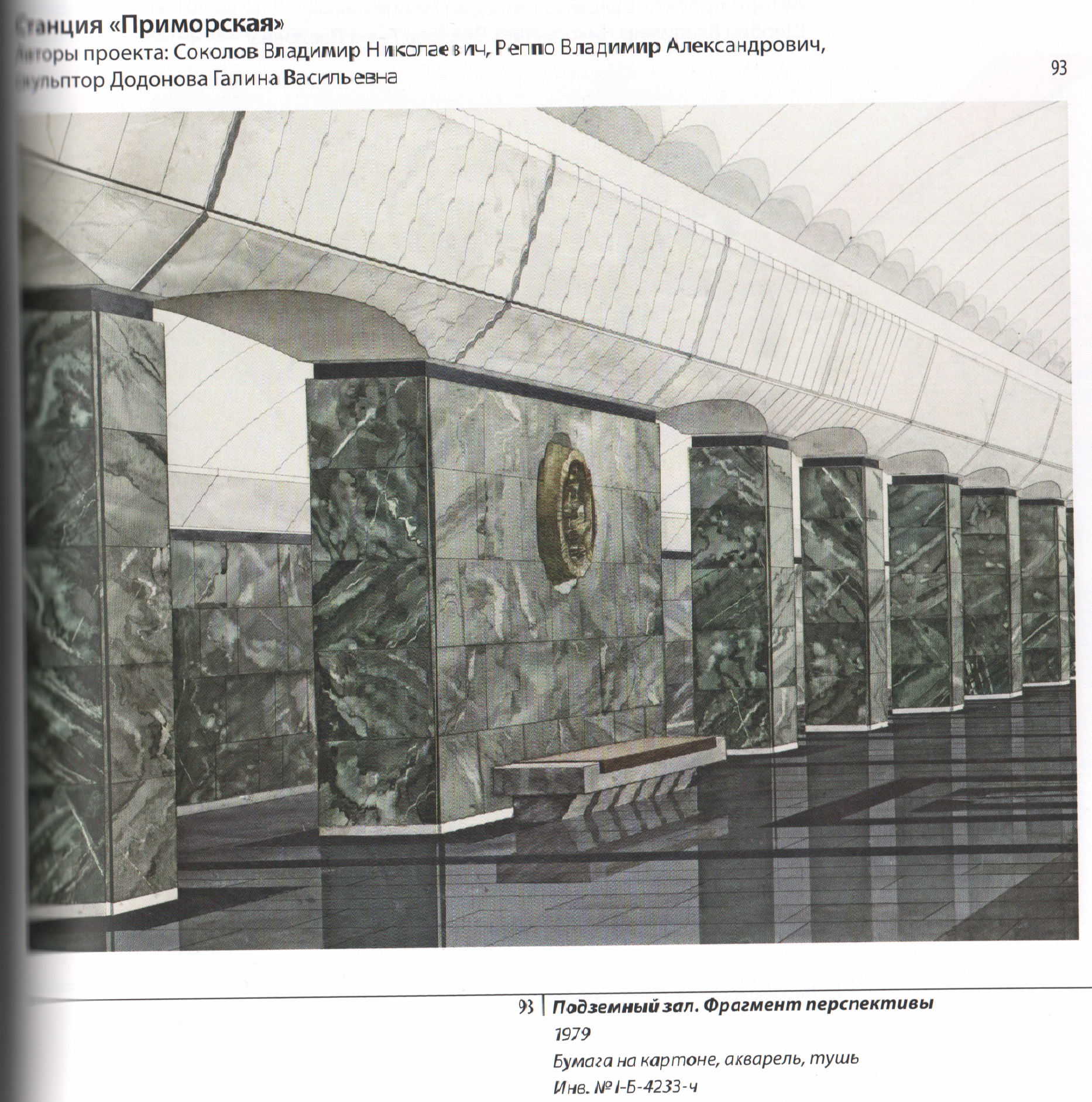 В руки мне попал переизданный в 2013-ом альбом «Петербургский метрополитен: из прошлого в будущее», выпущенный изначально в 2005 году к юбилею ПМ (именно из него и взяты эскизы в самых первых постах). Второе издание стало полнее. Из представленных здесь рисунков я повторю лишь те, которые были в чёрно-белом виде в этой теме (допускаю повторы в пределах форума). Если вдруг кому понадобится какой-то другой, пишите, с радостью отсканирую