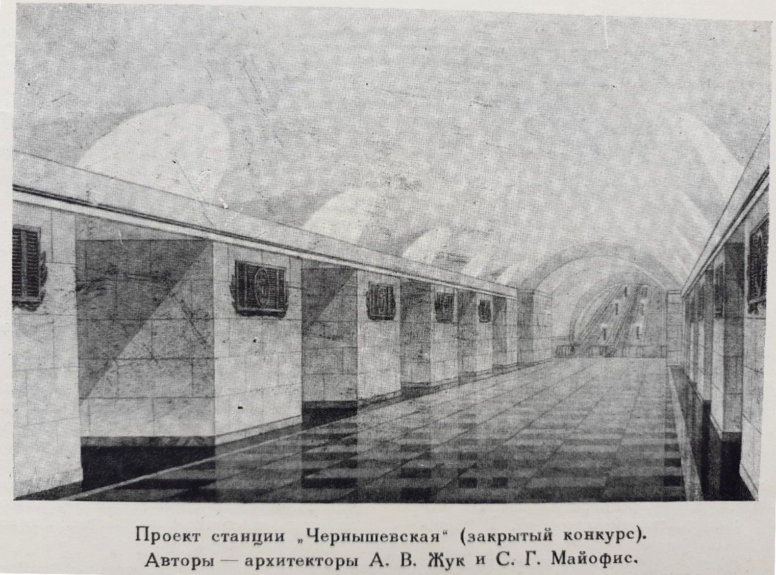 Станция метро «Финляндский вокзал» выше. Вопрос, возможно ли найти эскизы Чернышевской. Эти эскизы из Архитектуры Ленинграда по-моему 57 год. Есть ли возможность найти их?