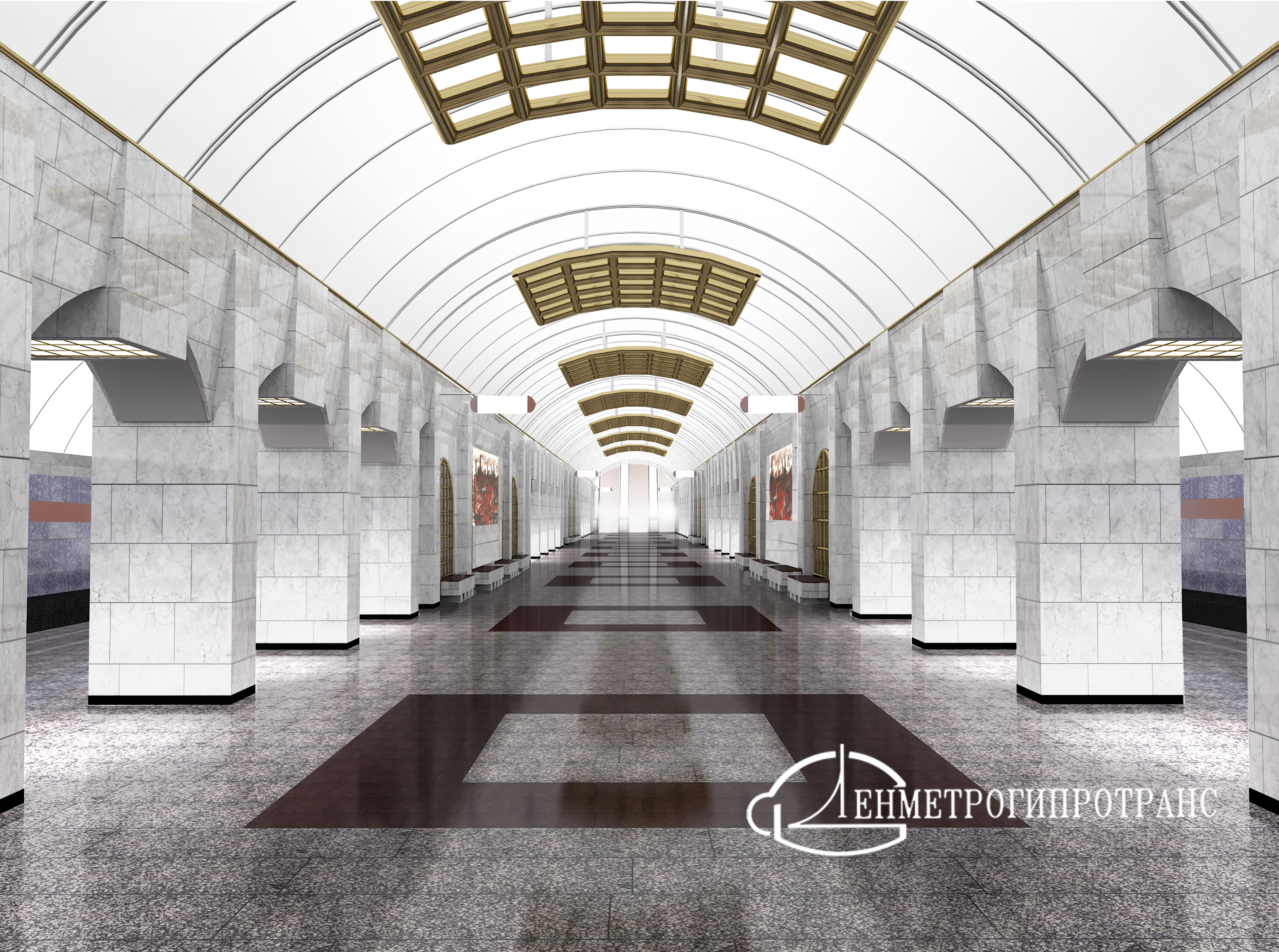 Несмотря на это, как говорят в «Ленметрогипротрансе», проект и тематику было решено не менять. Так, центральный зал подземного вестибюля опоясывают разорванные полукольца, которые по своей стилистике напоминают памятник «Разорванное кольцо» на берегу Ладожского озера. Военная тематика будет усилена пятиконечными звездами, которые будут расположены в месте разрыва полуколец.