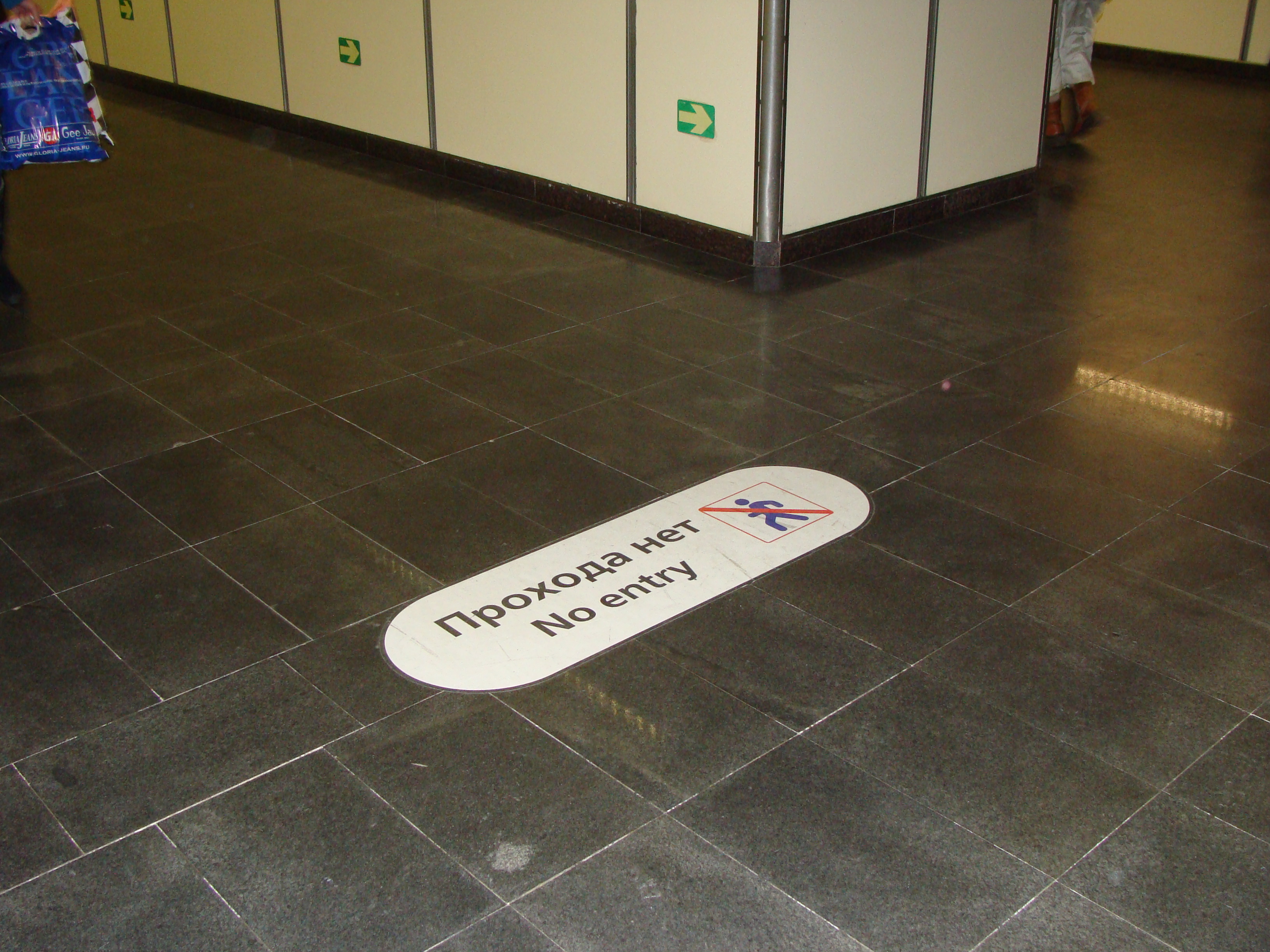 Если эти наклейки на полу и будут где-нибудь уместны (в чём я оооочень сомневаюсь), то только лишь на привокзальных станциях для приезжих из провинции, которые первый раз спустились в метро.