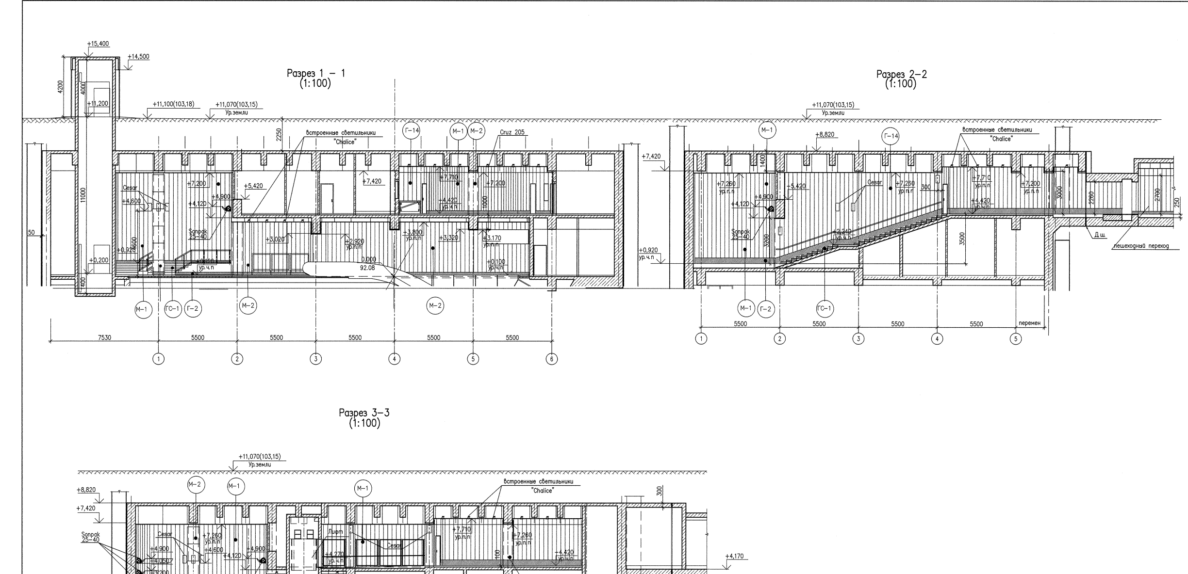 Путем нехитрых вычислений на основе представленных чертежей получаем глубину заложения 70,9м. От платформы до уровня поверхности 69,8м, это мог быть самый длинный эскалатор, длиннее, чем на Адмиралтейской. Что как минимум ведет к повышенной стоимости машин и эксплуатационным расходам. Это так, к слову, не могу сказать точно, что именно из-за этого приняли подземный вариант.