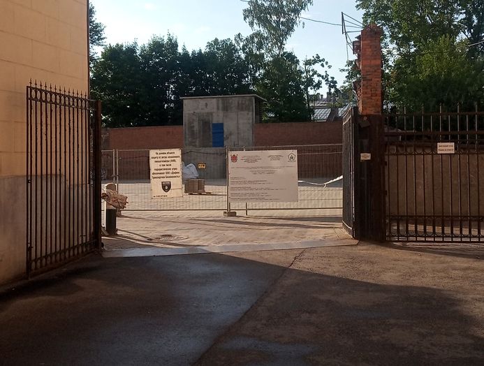 Насколько я понимаю, такое решение было выбрано для того, чтобы обеспечить обслуживание вентшахты, не вторгаясь на закрытую территорию лечебного учреждения.