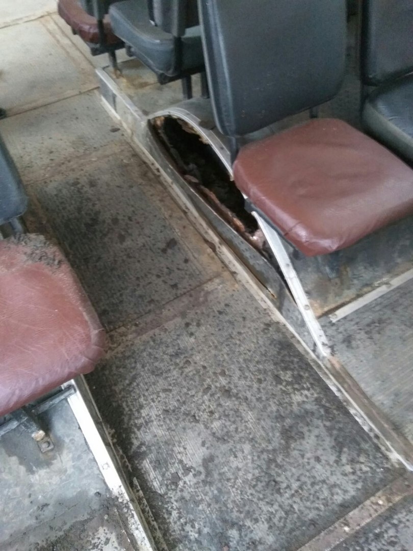 А вчера на ладожской шина во время движения 24 автобуса лопнула, слева дыру видно.