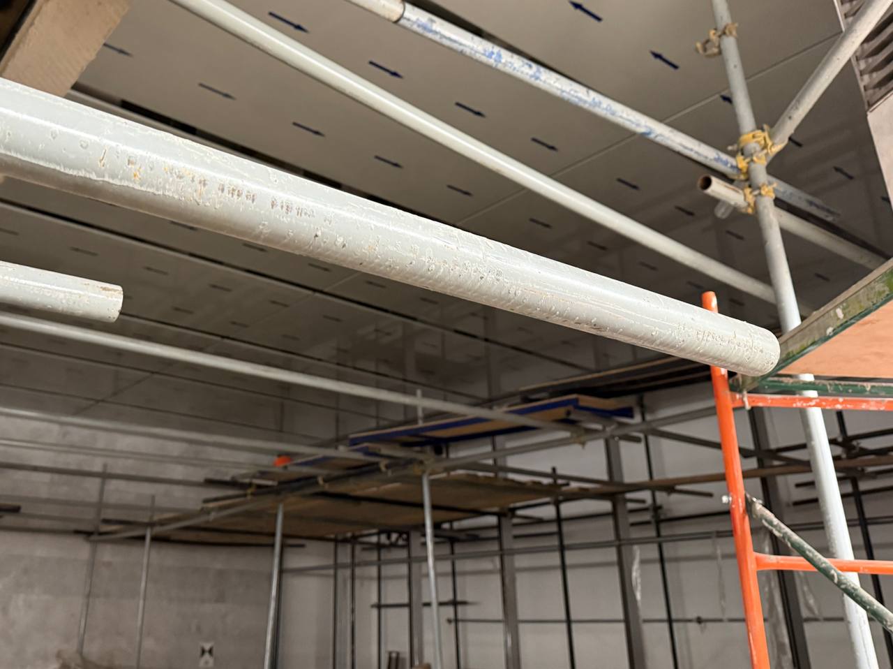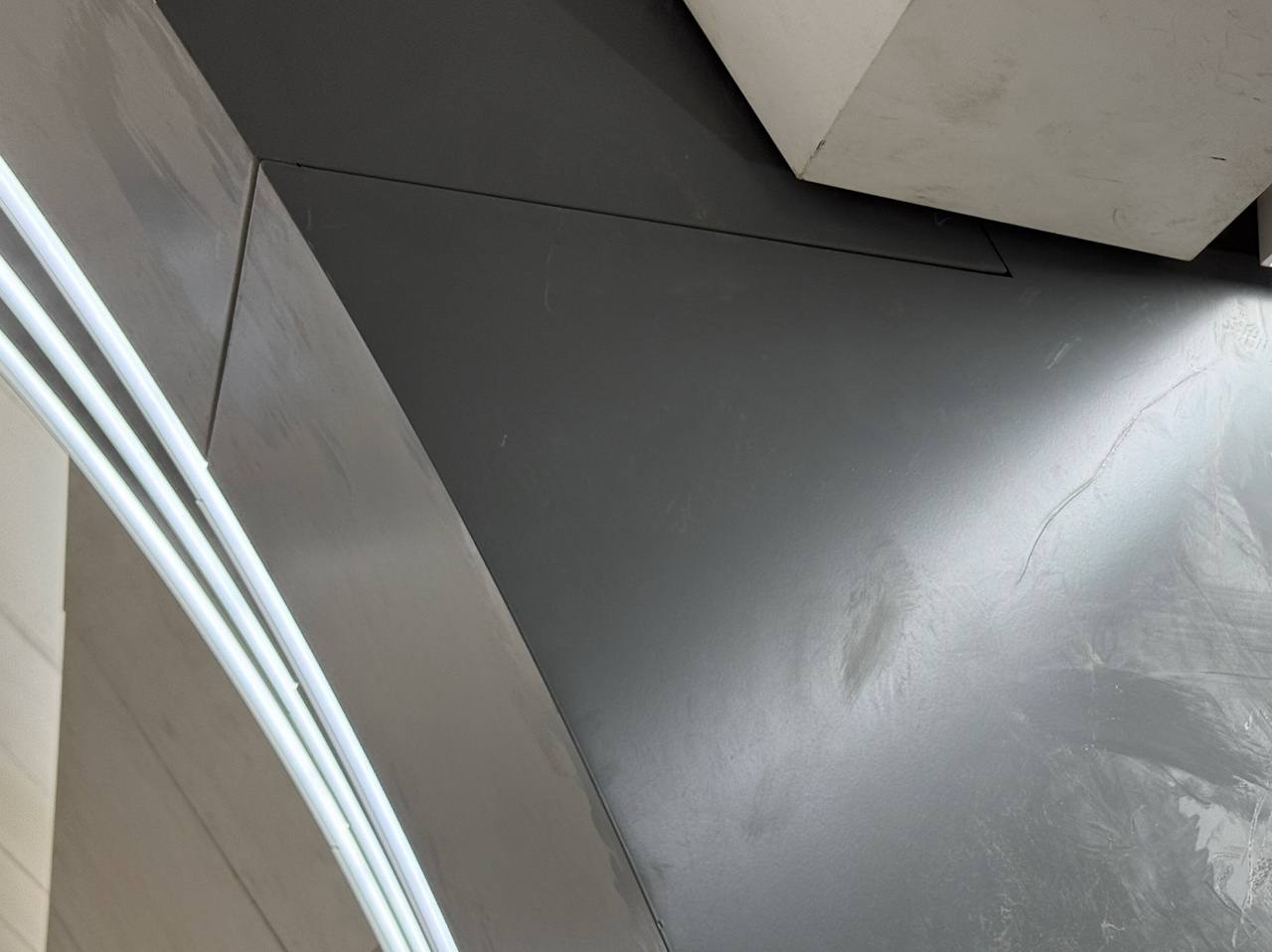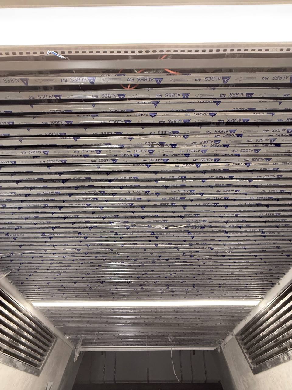 Установка потолка над эскалаторами.