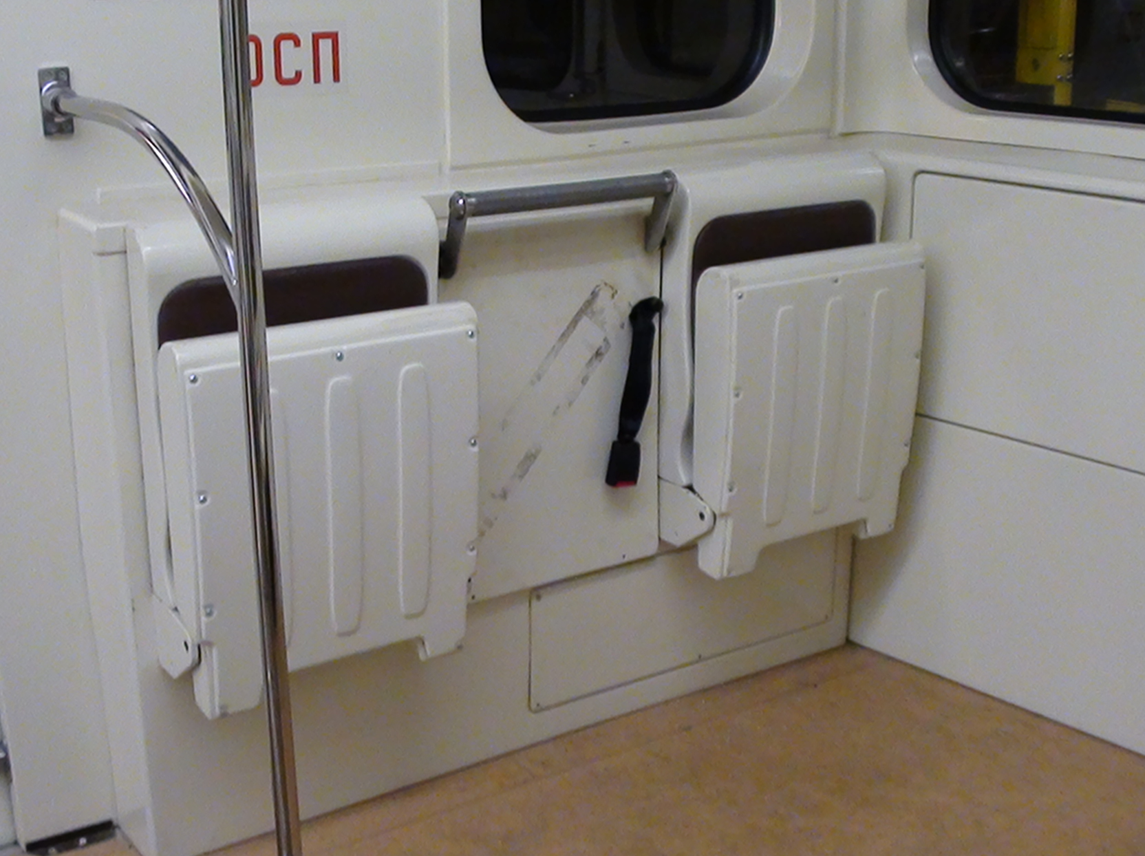 Начиная с вагона 1152 начались "принудительные места для инвалидов". Отсутствие откидной сидушки и наличия ремня для крепления инвалидной коляски а также ручки-держалки.