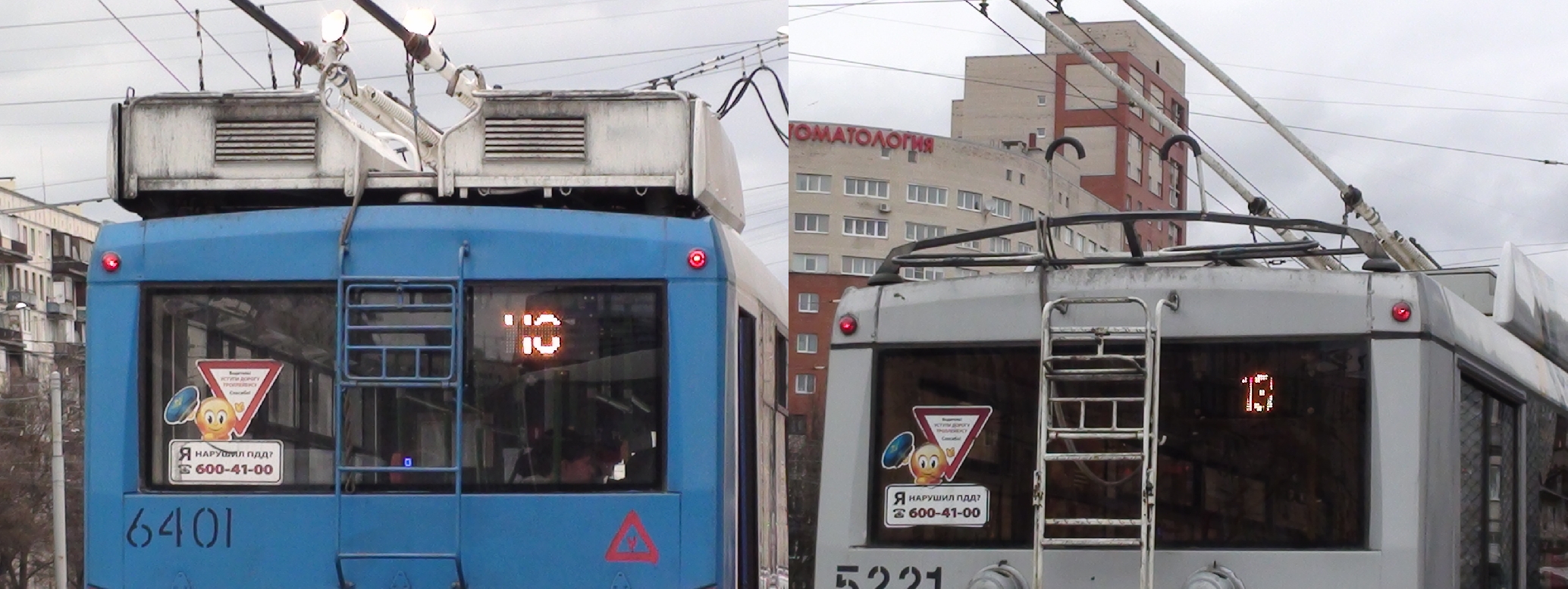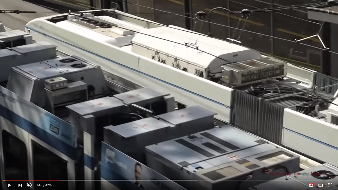 На 0:51 общий вид совмещенной линии, около верха кадра удобная для оценки поперечная растяжка, на которой можно разглядеть все крепления. Посередине между трамвайными висит еще какой-то не то двойной, не то тройной провод. Фидер? Дублер троллейбусного минуса?
