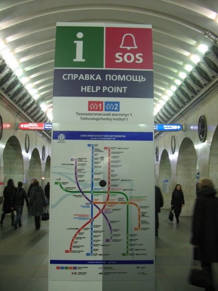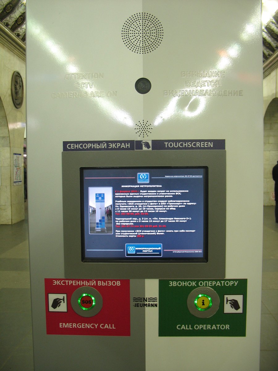 Кстати говоря, вполне возможно, что эта "переоблицовка" ИнфоСосов сделана для снижения контрастности их по отношению к убранству станций. Раньше эти столбы были разноцветные сверху донизу, теперь же они яркие только сверху, а почти по всей длине - нейтральные бело-серые.