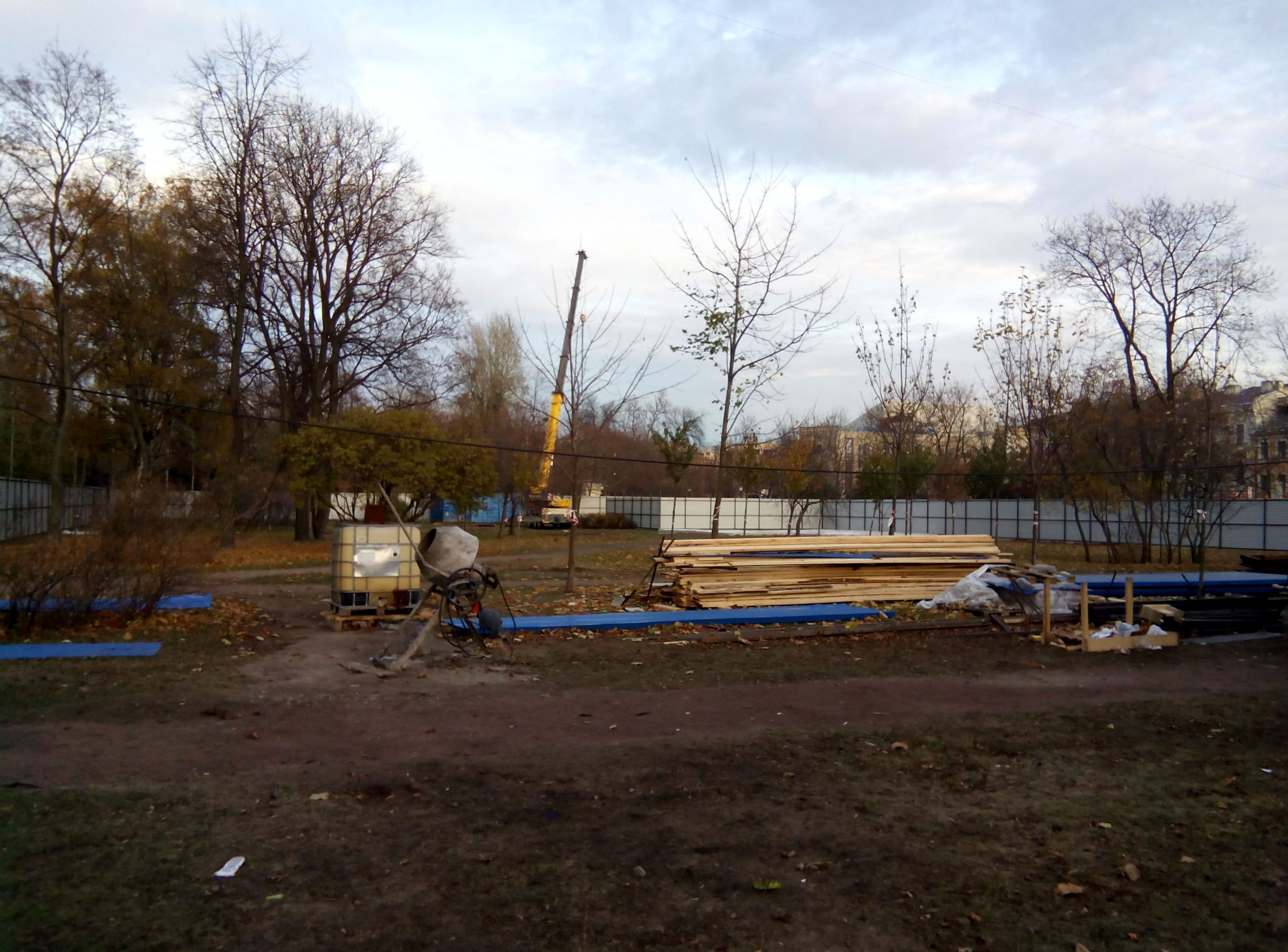 И сегодня заметил перед Прибоем первую бытовку с уже хорошо знакомым информщитом со "сроками прозОВСТВА работ" и колышки по границе участка. Рядом, вне размеченного участка расположена ещё одна бытовка - Ленсвета, производящего капитальный ремонт освещения на ул. Шевченко.