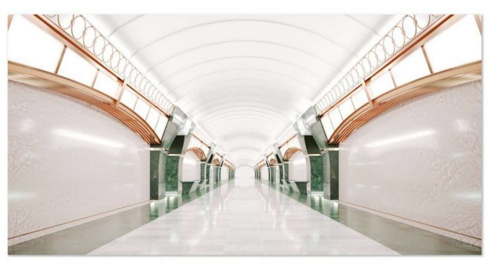 Надо учесть что на фото мрамор в оформлении колонн практически черный и зелёного там не просматривается. Следовательно скорее всего станция получится более черной чем на новом рендере.