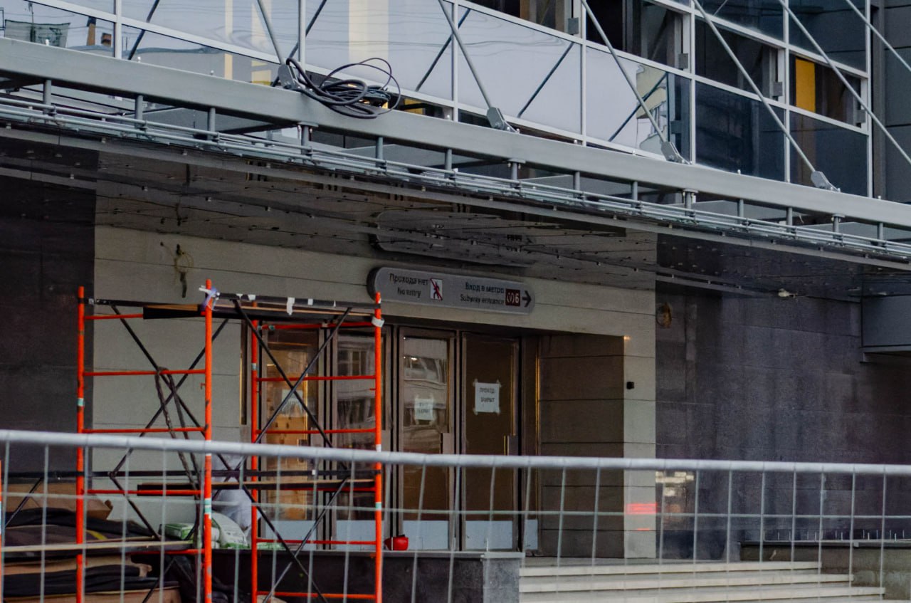 Также рядом с входом в вестибюль появился ещё один логотип Петербургского метрополитена.