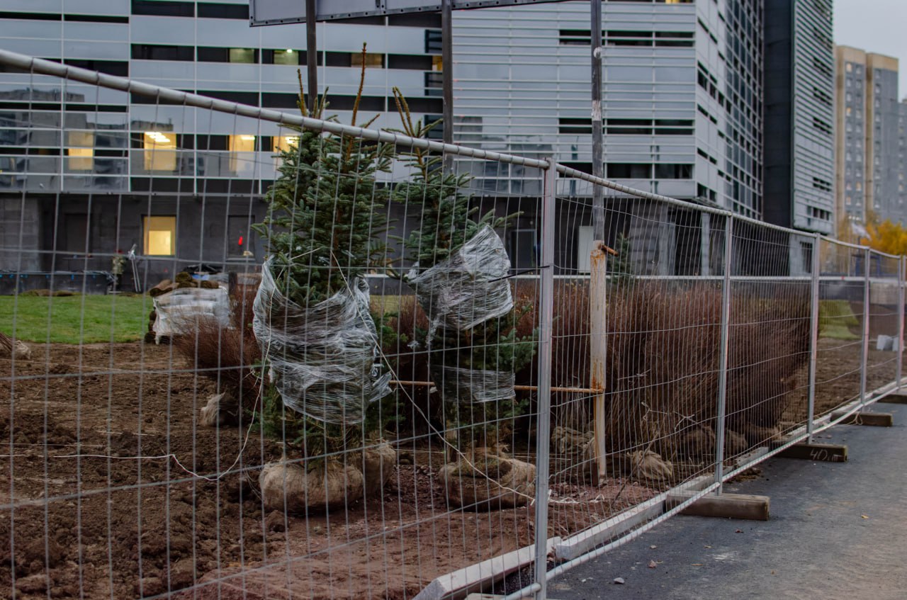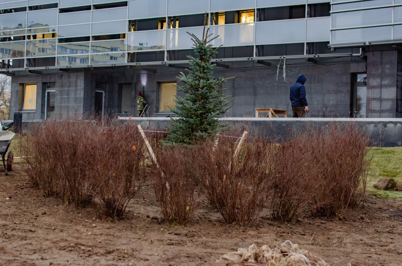 Начали заводить деревья и кусты.