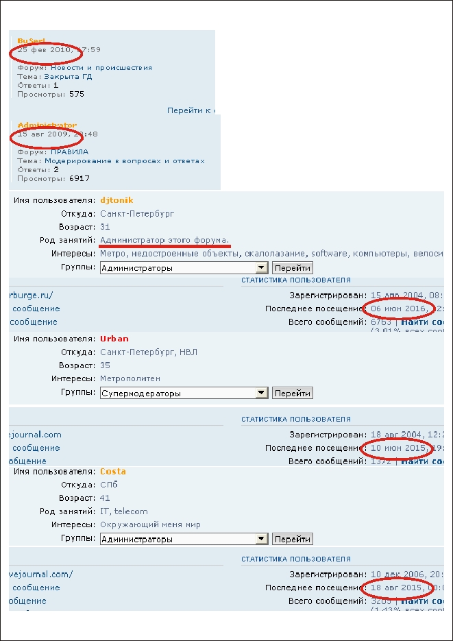 Кажется, я понял в чём дело. Те, кто когда-то был Админами/Модерами, уже перестали ими быть. Им уже к 40 годам, и к этому возрасту интересы видимо мутируют. Все те, кто был записан в модераторы, больше не модераторы, по факту. Остались только ярлыки модераторов. На скане предлагаю ознакомиться со статистикой посещений модераторов/админов на сегодня, 2 октября 2016 г.