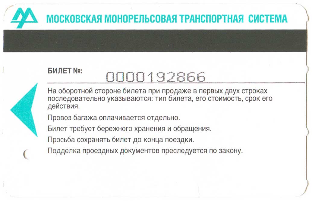 Обратная сторона монорельсного проездного
