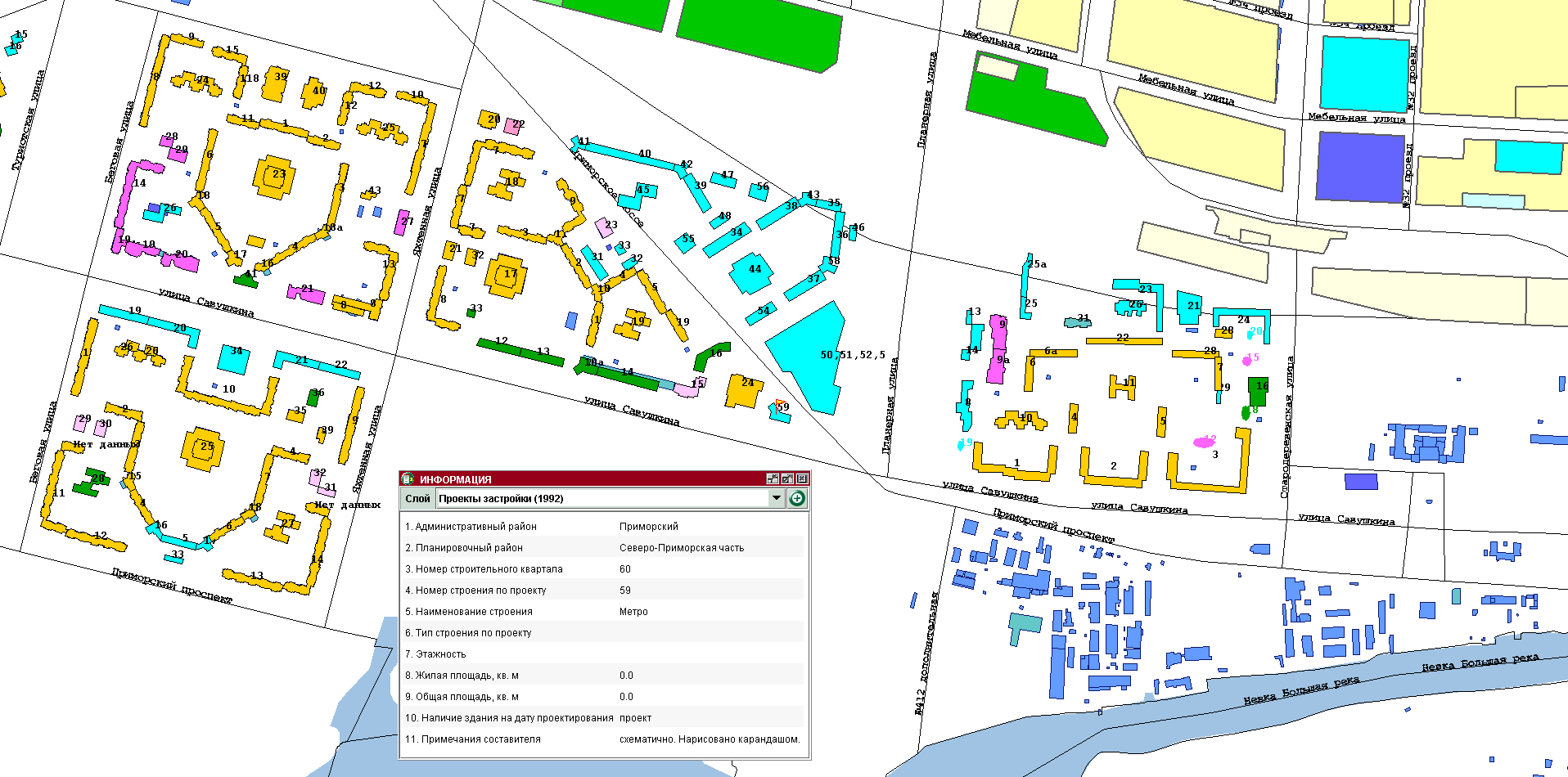 И, наконец, финальная находка из всей тройки в ЕИСТ-2002 — станция метро «Улица Савушкина». Тут ещё и вторая половина квартала 60 СПЧ засветилась