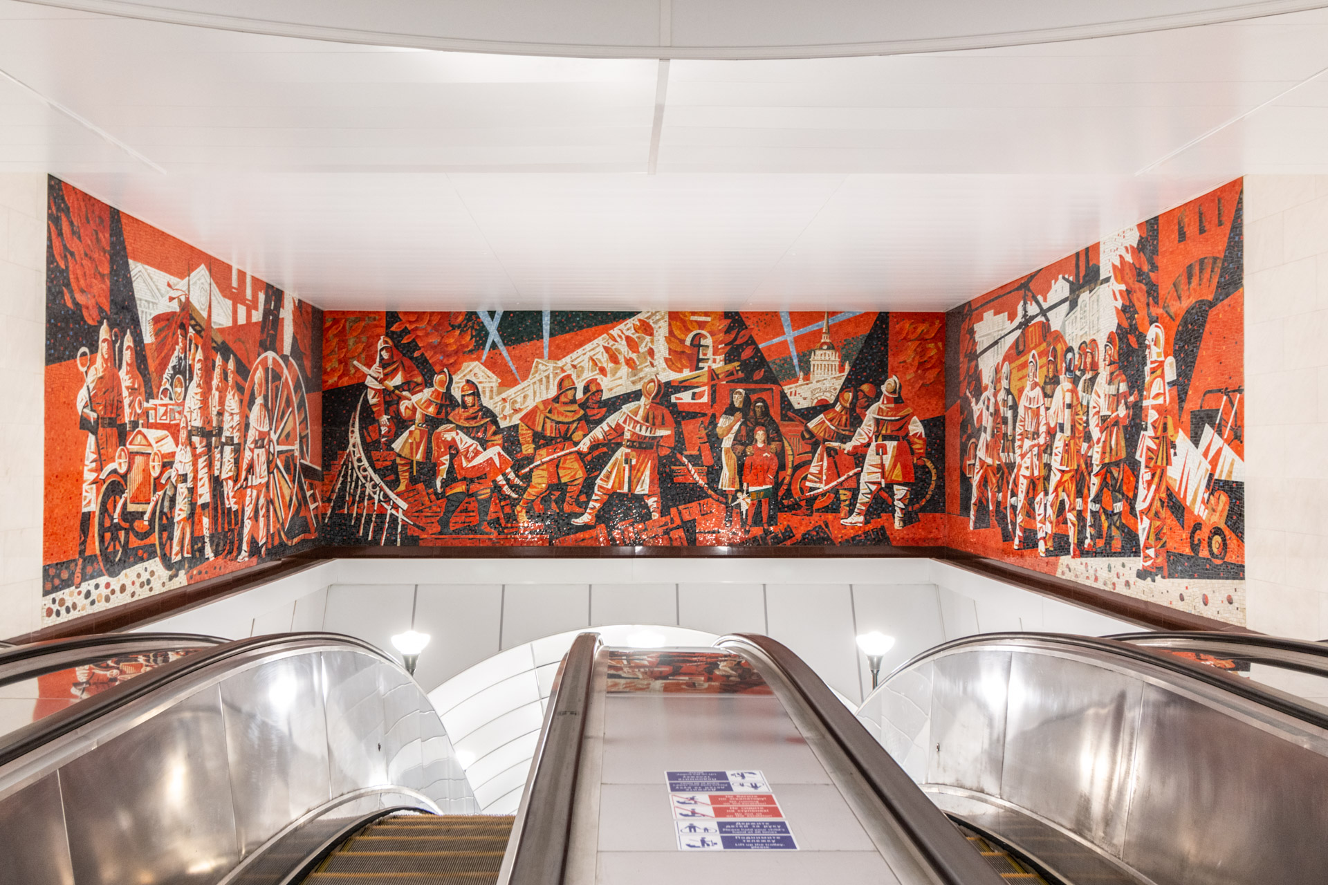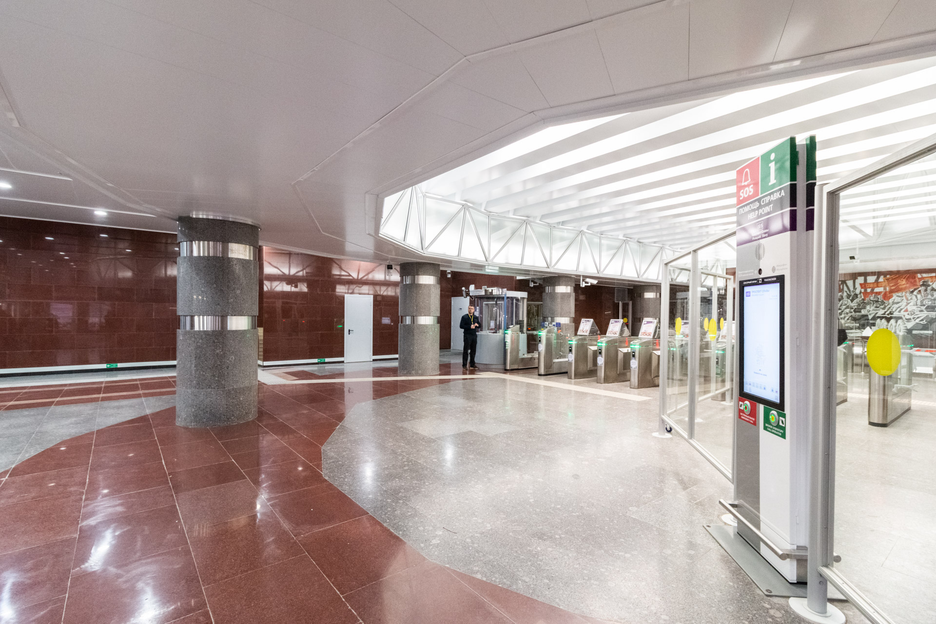 И пара фотографий подземного зала, он, пожалуй, вышел действительно самым нарядным из открывшегося участка