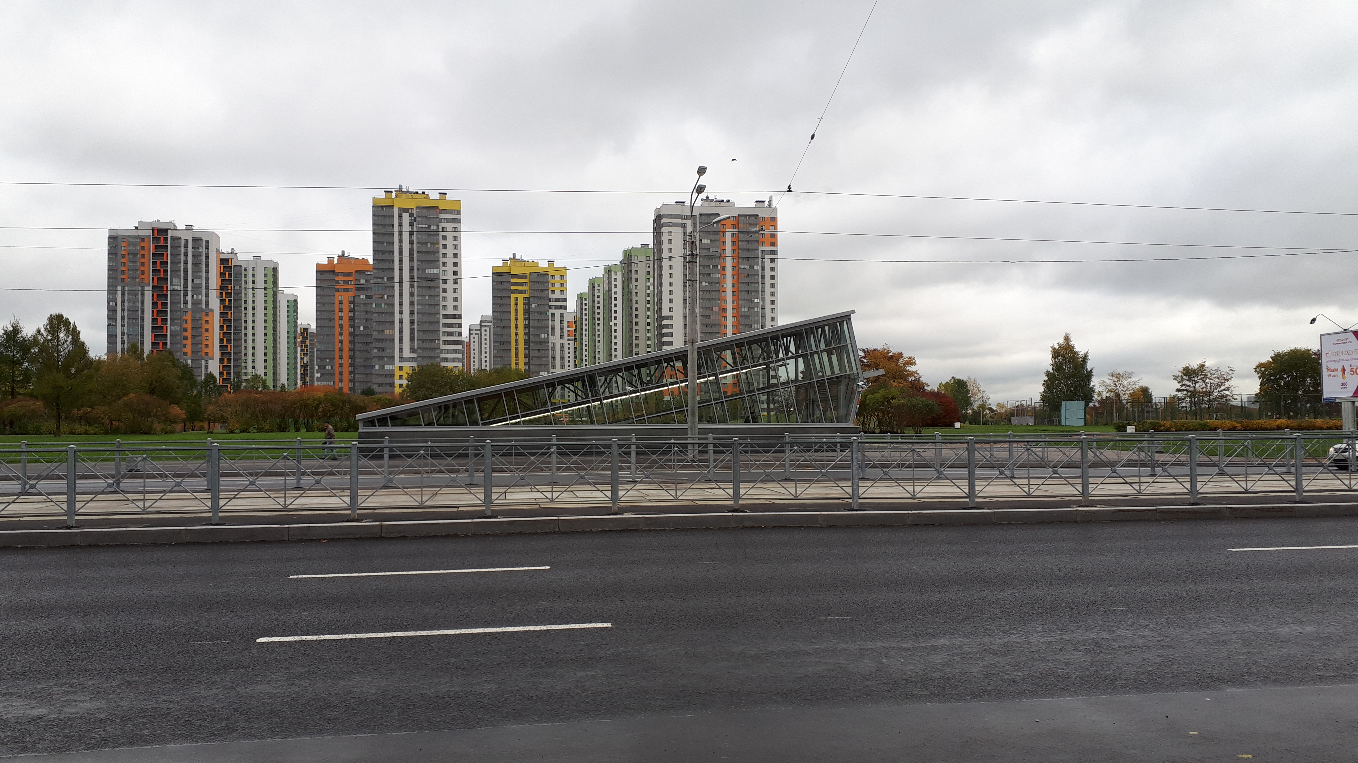 Ужасно убогое архитектурное решение выходов: и на ФР, и на Беговой они отвратительные. Какая-то стеклянная нора в земле. Ведь можно было построить аккуратный павильон, как на Новокрестовской, или как в Москве часто делают. Нет, эта упавшая дура, как съехавшая набекрень шапка.