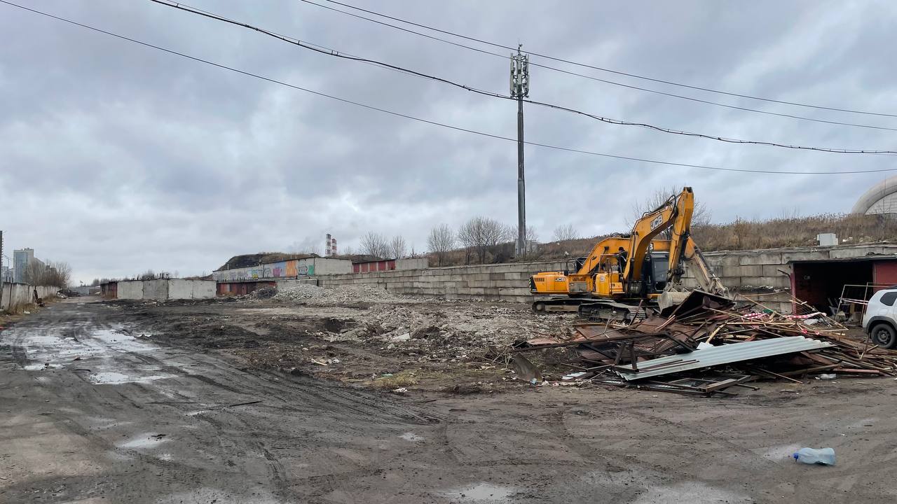 На данный момент строители приступили к демонтажу гаражного кооператива, который находился здесь ещё с СССР.