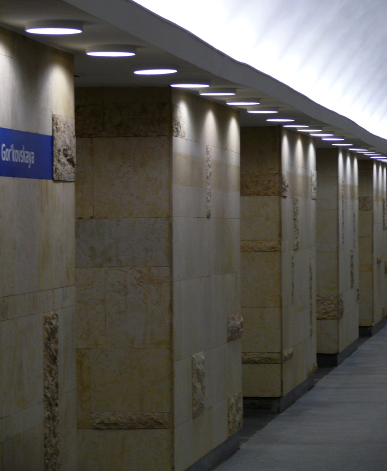 4 раза проезжал Горьковскую в сторону Петроградской - и каждый раз названия станции на путевой стене не были видны в окно: они были между краем окна и дверью, чуть вылезая из-за этого промежутка. это мне так повезло, или же это наклеивателям в глаз что-то попало?
