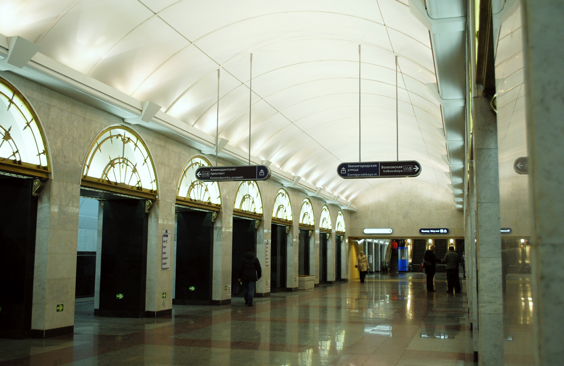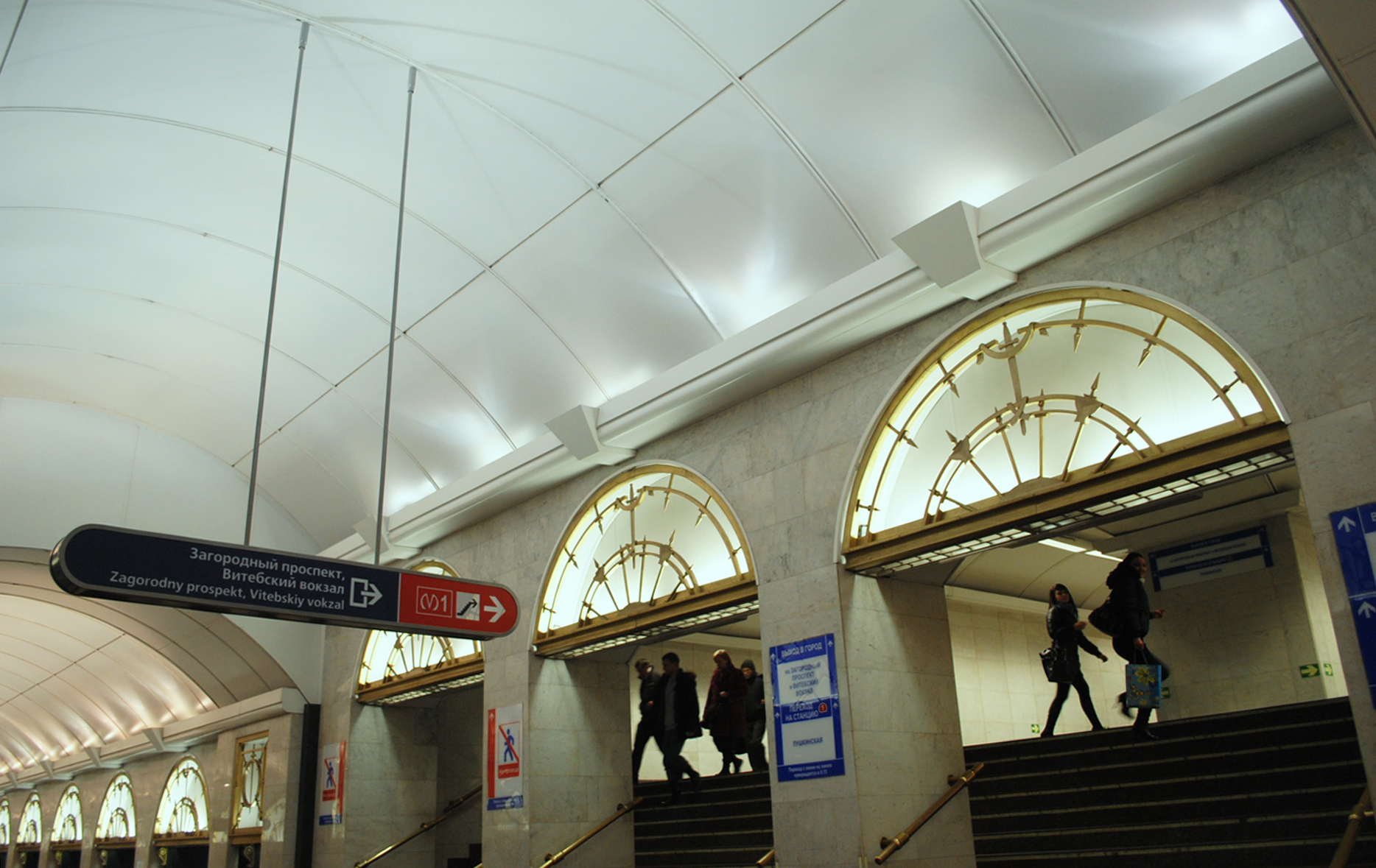 Единственный плюс в этих лайтбоксах это то, что теперь стали указывать выход конкретно на какую-либо улицу/на проспект, а не просто Выход/Way out. Только правильно ли указана улица? Выход же не на Загородный проспект/Витебский вокзал, а на Звенигородскую улицу. Или это не так?