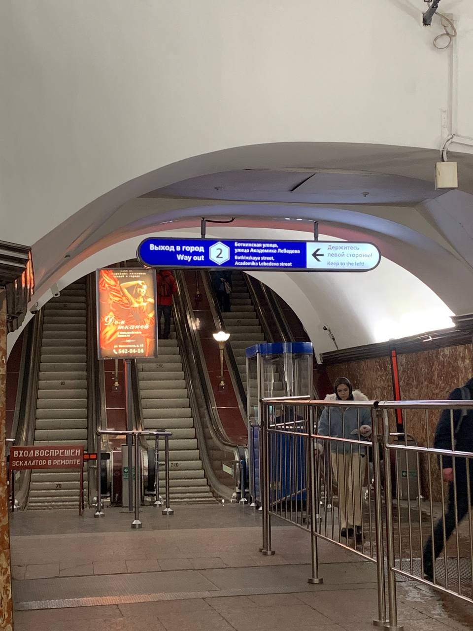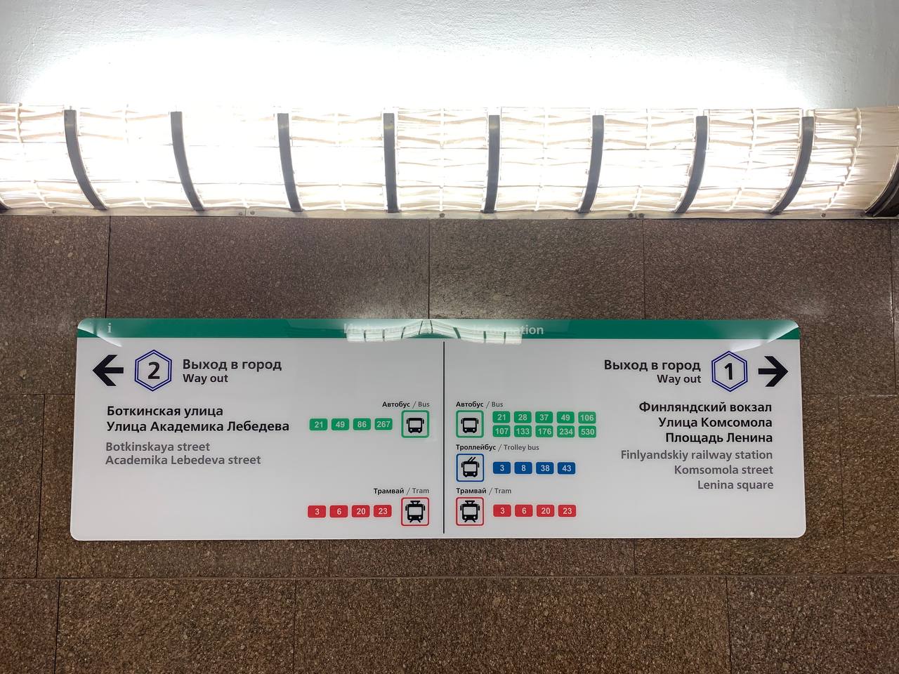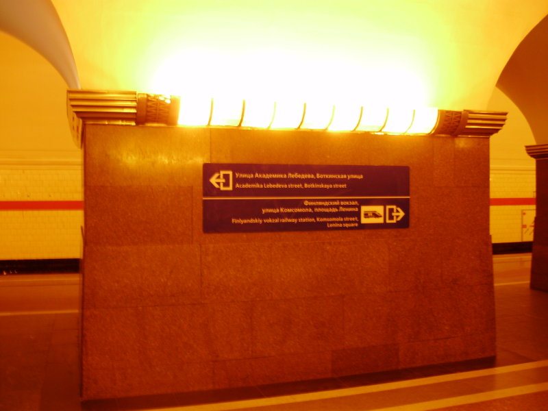 Ну, реклама на китайском у нас уже есть) А что касается указателя, то по мне это странное решение, либо уж вешайте полную схему транспортного узла, либо направляйте к остановкам наземки в том или ином направлении (в центр, в Петроградский и Выборгский районы для Боткина и в Калининский и Красногвардейский для выхода на вокзал)