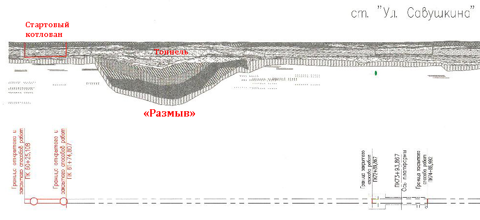 Эта иллюстрация даст ответ по поводу «размыва» - его планируется преодолеть сверху, между стартовым котлованом и котлованом ст.«Беговая».