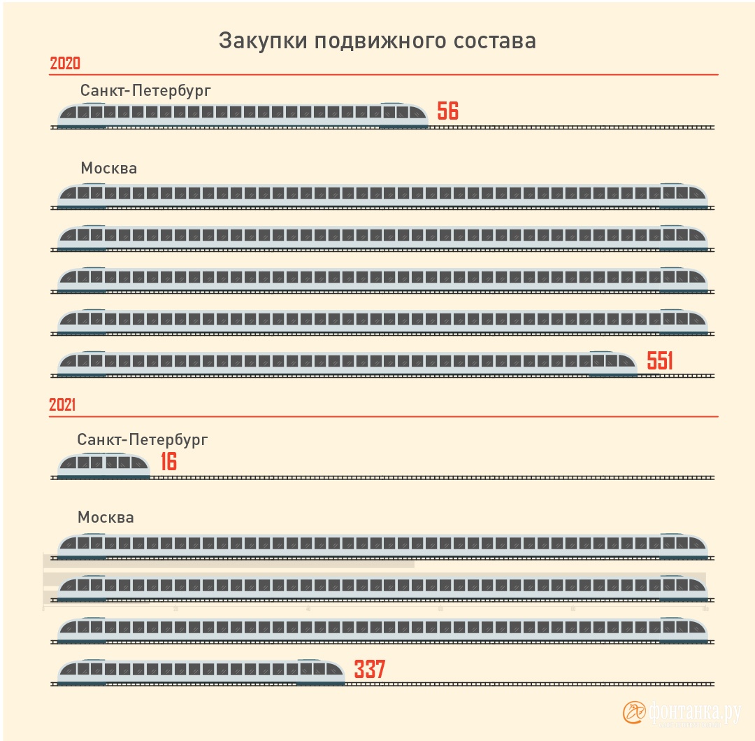А сравнивать объёмы закупок подвижного состава Санкт-Петербургом и Москвой вообще бессмысленно.