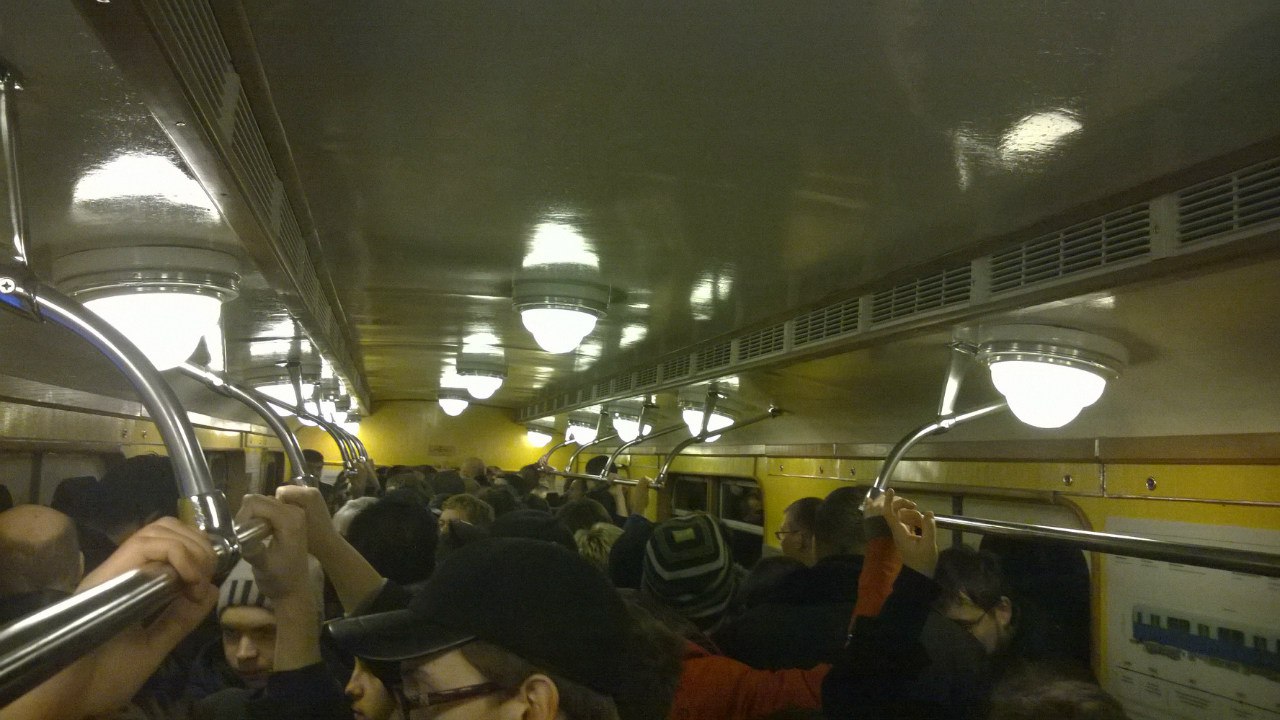 ! Проехался от "Автово" до "Восстания", старт был в 10:12. Правда из-за толпы удалось рассмотреть только 1,5 вагона, жаль, нет у нас станций с тремя путями а-ля московская "Партизанская" для спокойного рассматривания композиции. Далее я поехал в музей метро.- Nikdoge