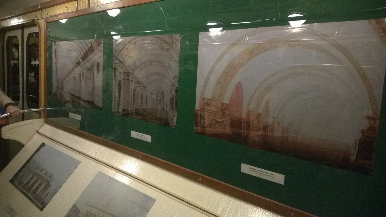 2. На одном из стендов над надписью "Салон первого серийного 81-717. Электродепо "Московское". 2012" совершенно другая фотография. На снимке "Салон 81-714.5П, 0111. Станция Волковская. 2012".