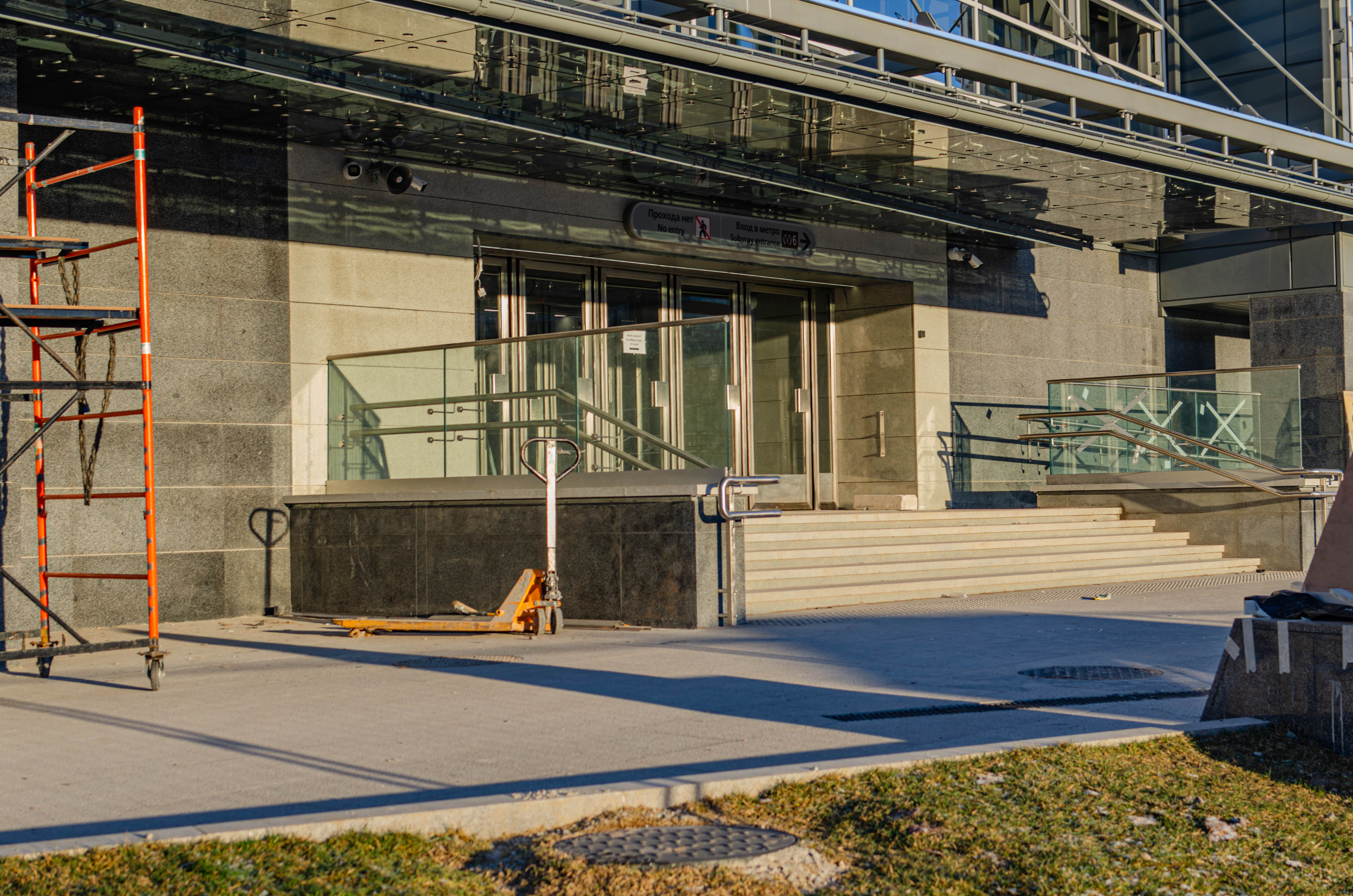 На Юго-западной за прошедшую неделю установили уличное освещение, установили перилла у выхода, как обычно потихоньку расчищают стройплощадку.