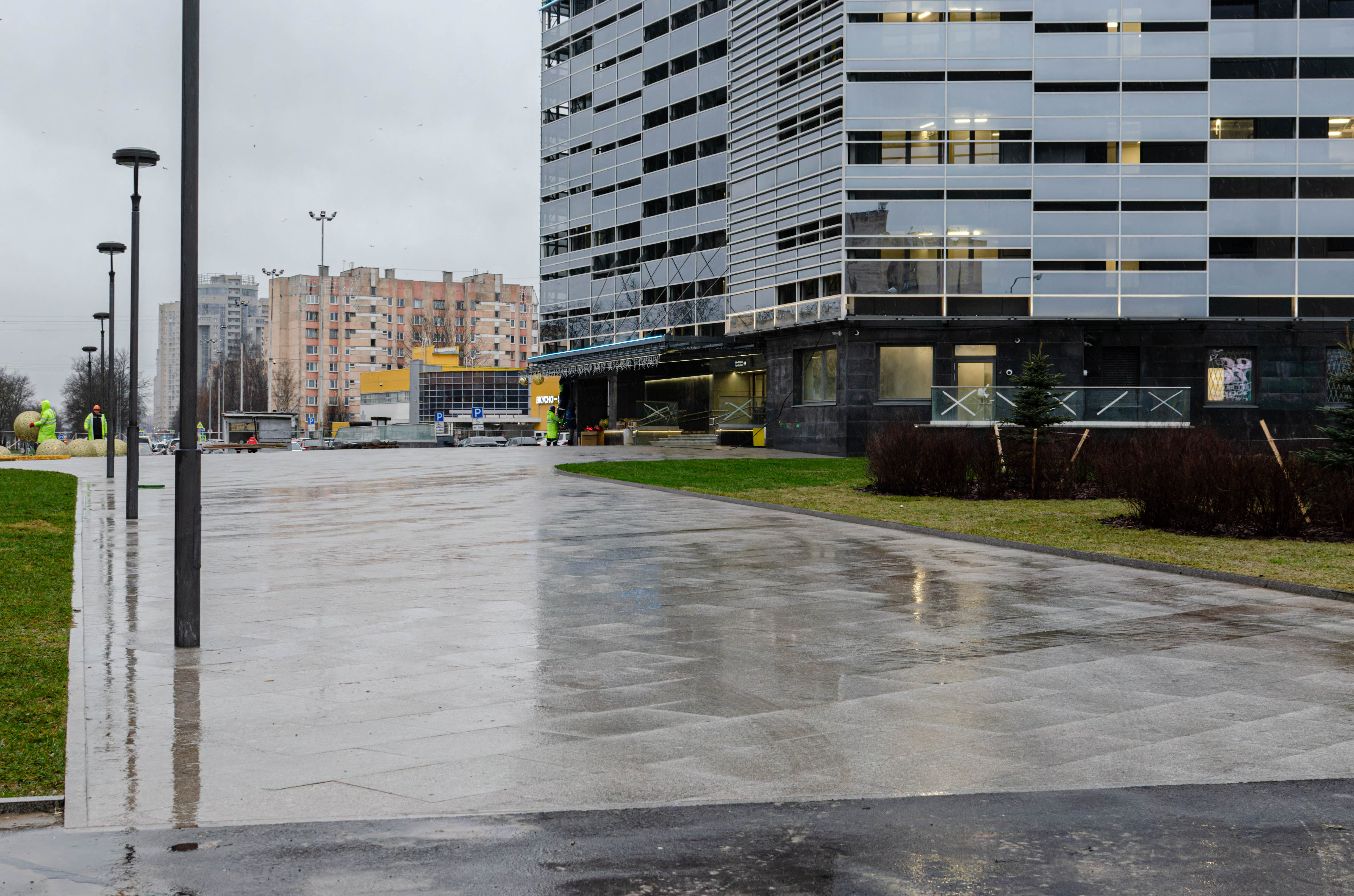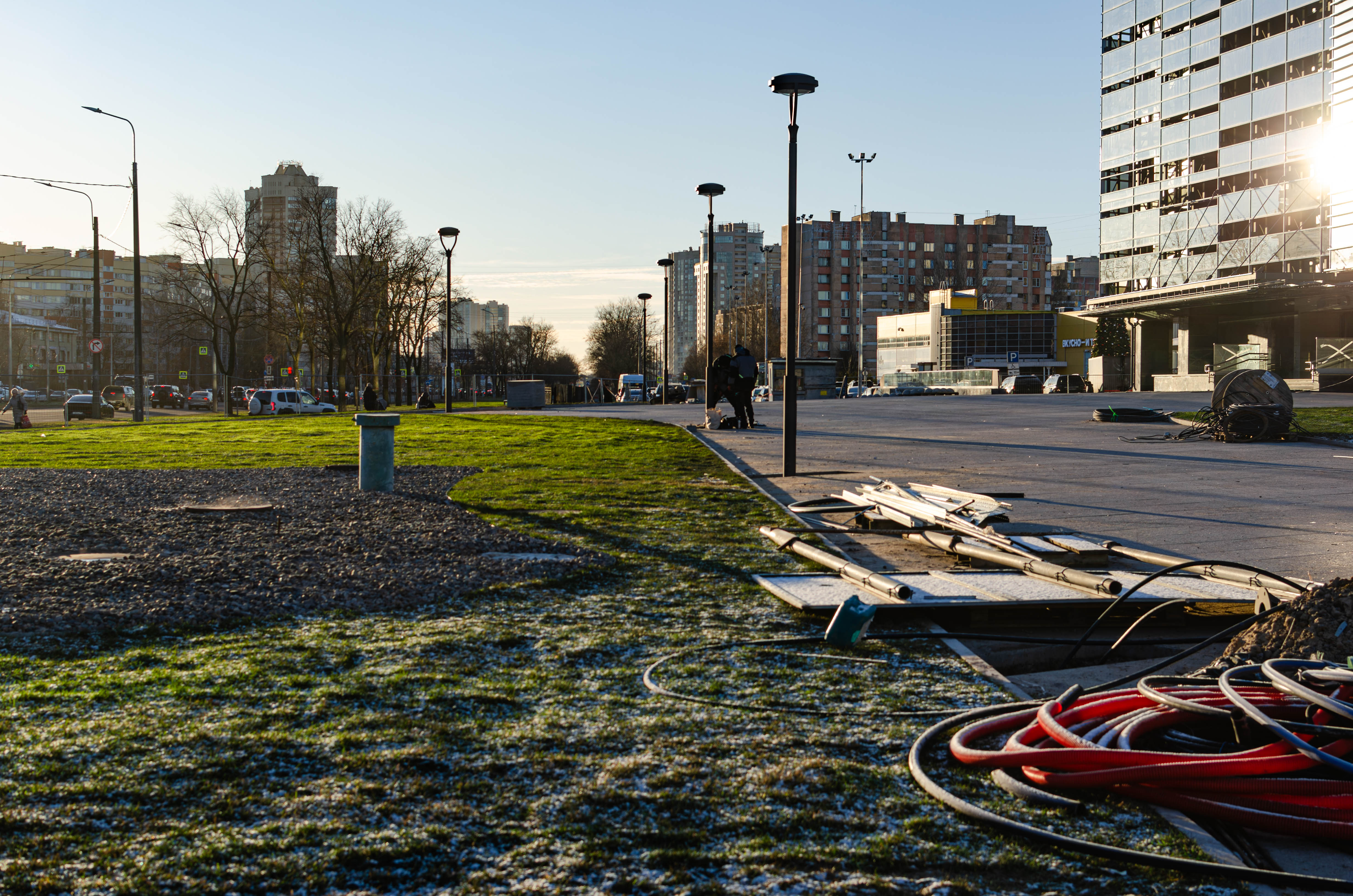 На строительной площадке вестибюля станции «Юго-Западная» Красносельско-Калининской линии Петербургского метрополитена завершается благоустройство. Со стороны проспекта Маршала Жукова установили светодиодные уличные светильники на опоре высотой 5 метров.