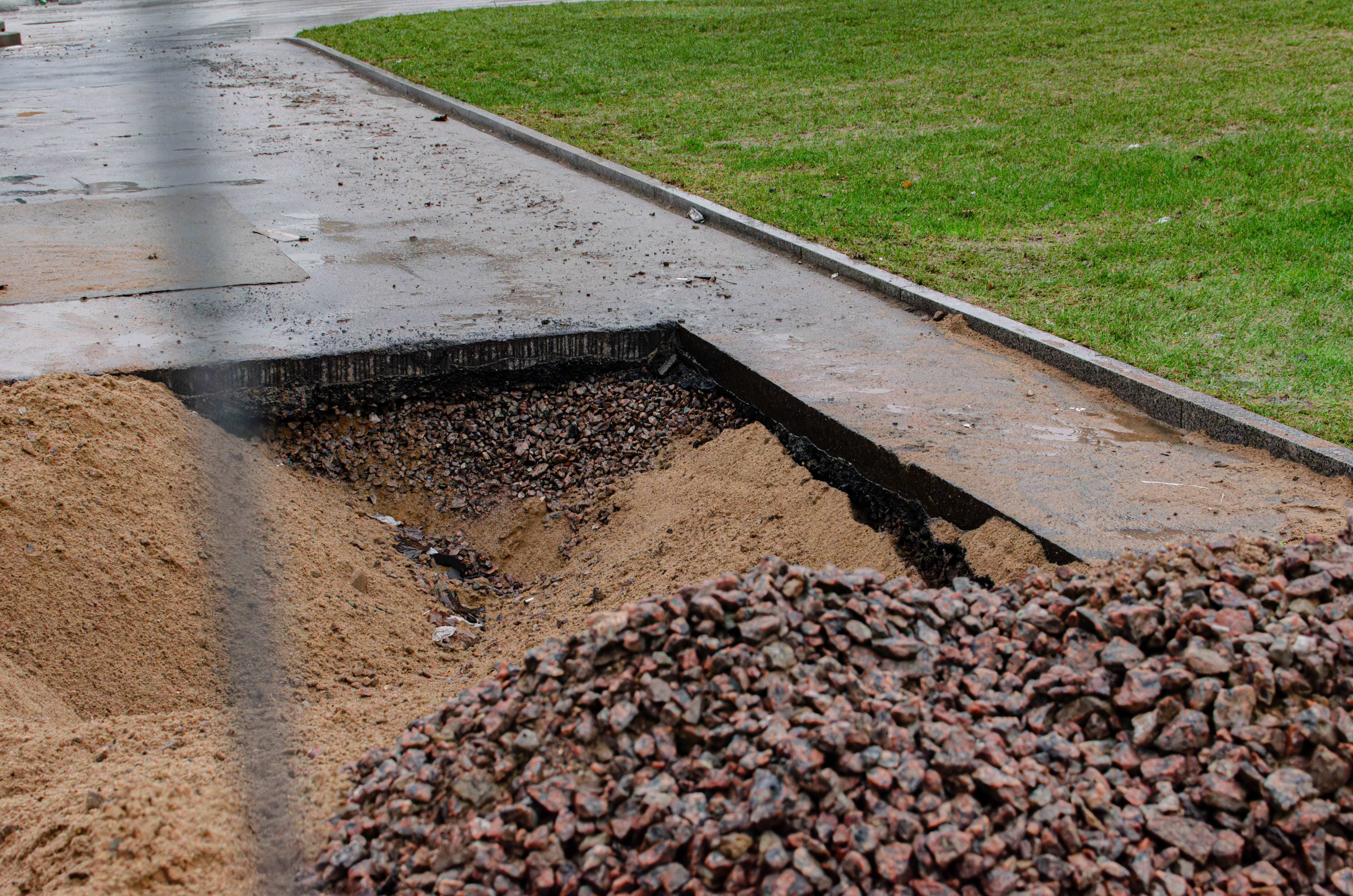 На данный момент украшают территорию новогодними украшениями, в районе насыпи из гальки накидали булыжники.