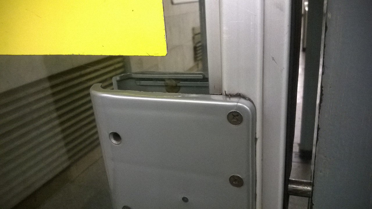 Пару дверей на выходе заменили(?), теперь идёт кант маленьким угловатым профилем, у меня аж пальцы зацепились. И выглядят они как ларёчные, собранные из попавшегося под руку.