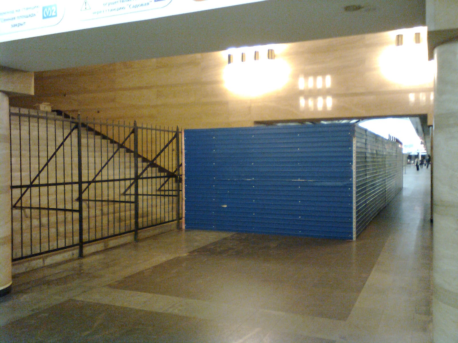 Синий заборчик уже нарисовался, около будущего выхода в город за первым проемом слева в сторону перехода Спасская - Сенная. Видно для хранения вской всячины. Но там отгорожена явно не треть.