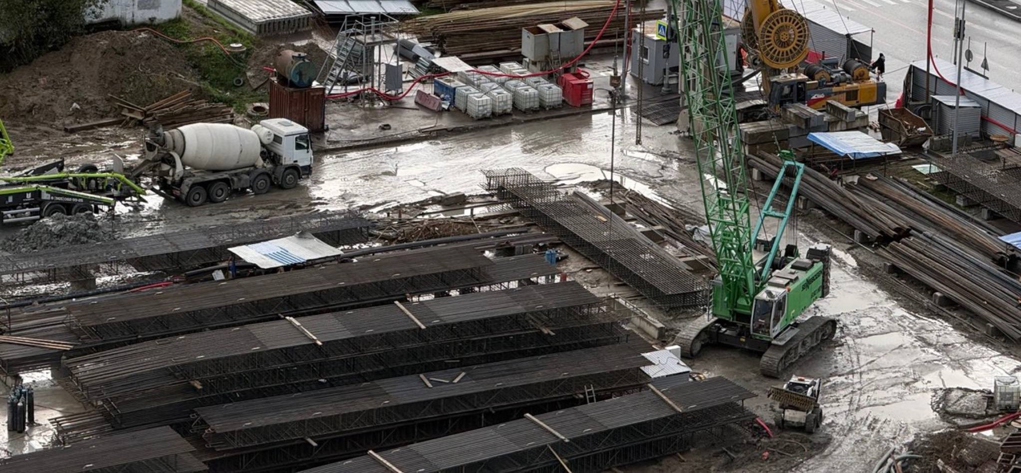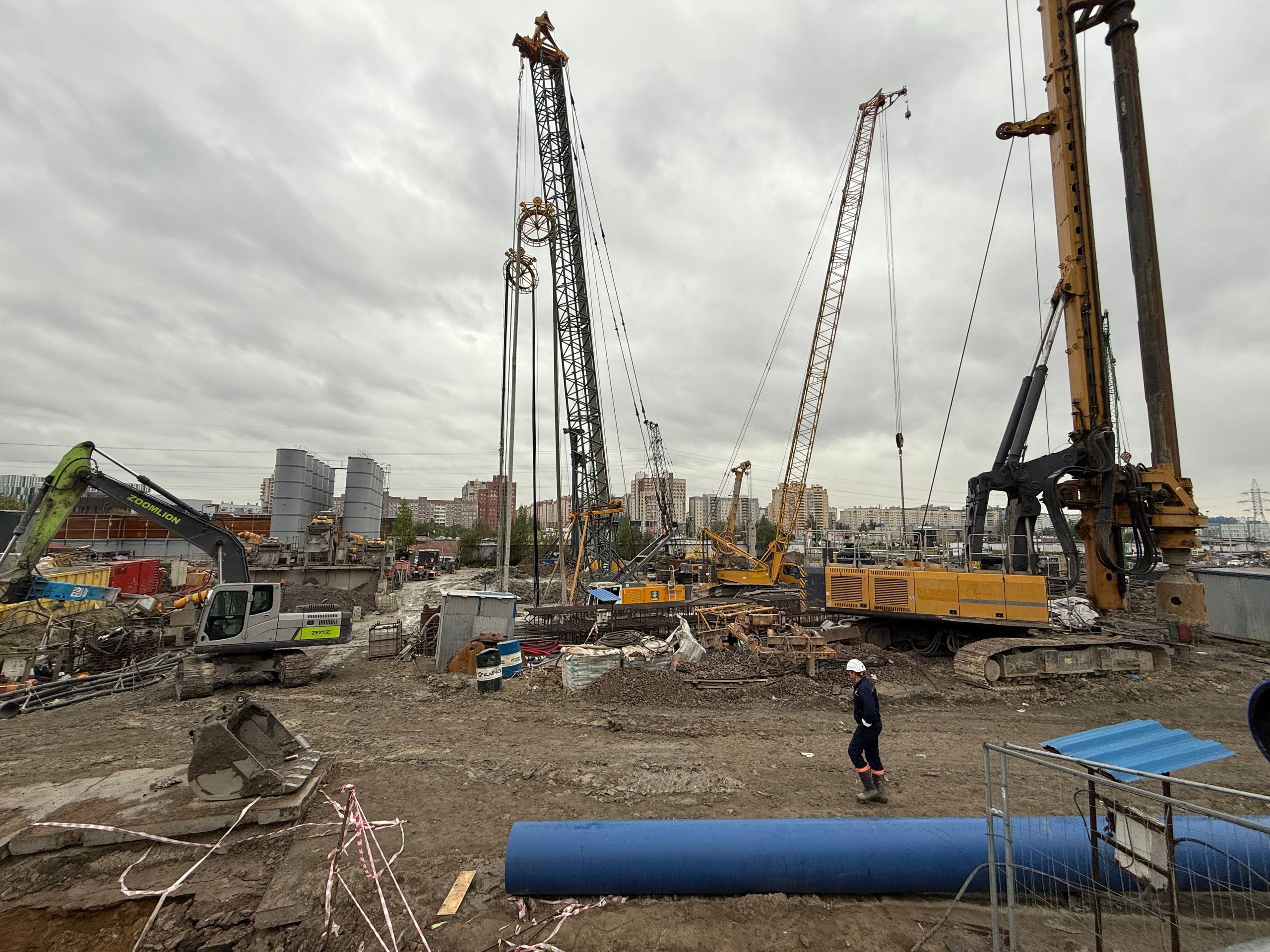 Выполнены работы по устройству форшахты. На данный момент сооружены 6 из 8 заходок торцевой стены по технологии «стена в грунте» (СВГ) — ограждающей конструкции котлована будущей станции. Ширина заходок составляет 1 метр, длина — 2 метра, глубина — 36 метров. По мере того как грейфер выкапывает траншею (заходку), её заполняют бентонитовым раствором, чтобы стенки не осыпались. Затем в эту траншею опускают предварительно заготовленные арматурные каркасы. После этого на дно заходки опускают бетоновод, и бетонную смесь укладывают снизу вверх. Вытесняемый бентонит собирают, очищают и используют повторно, добавляя свежий раствор.