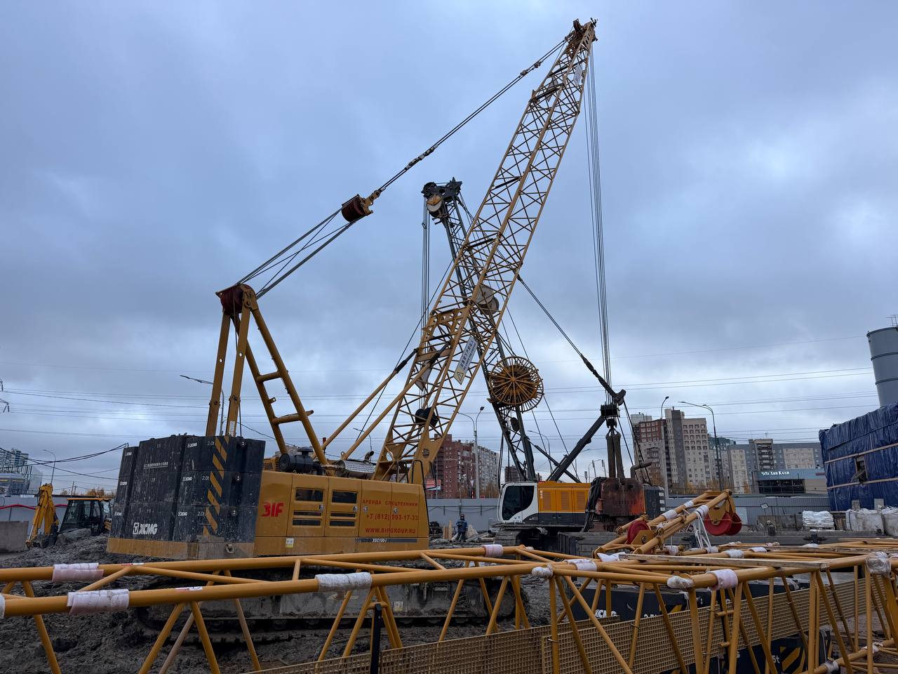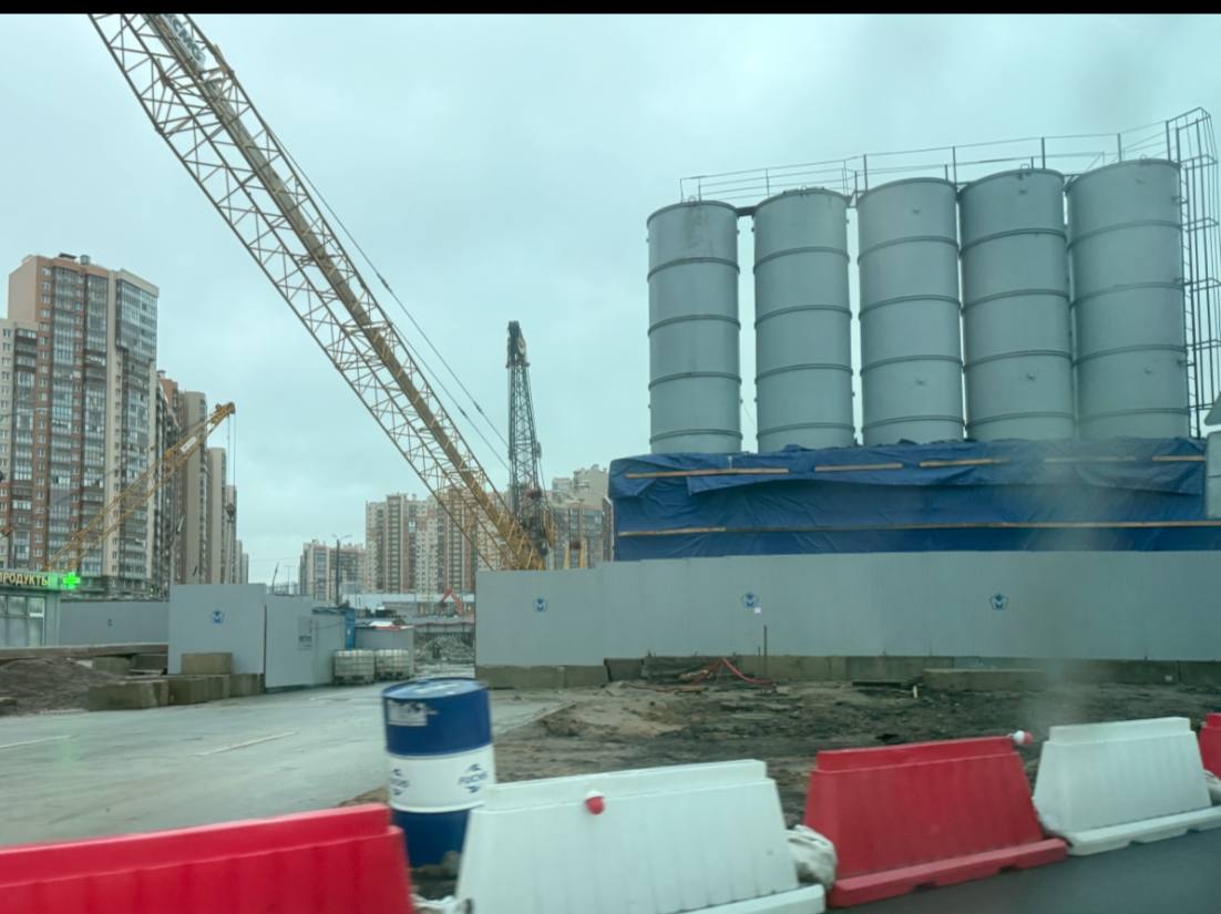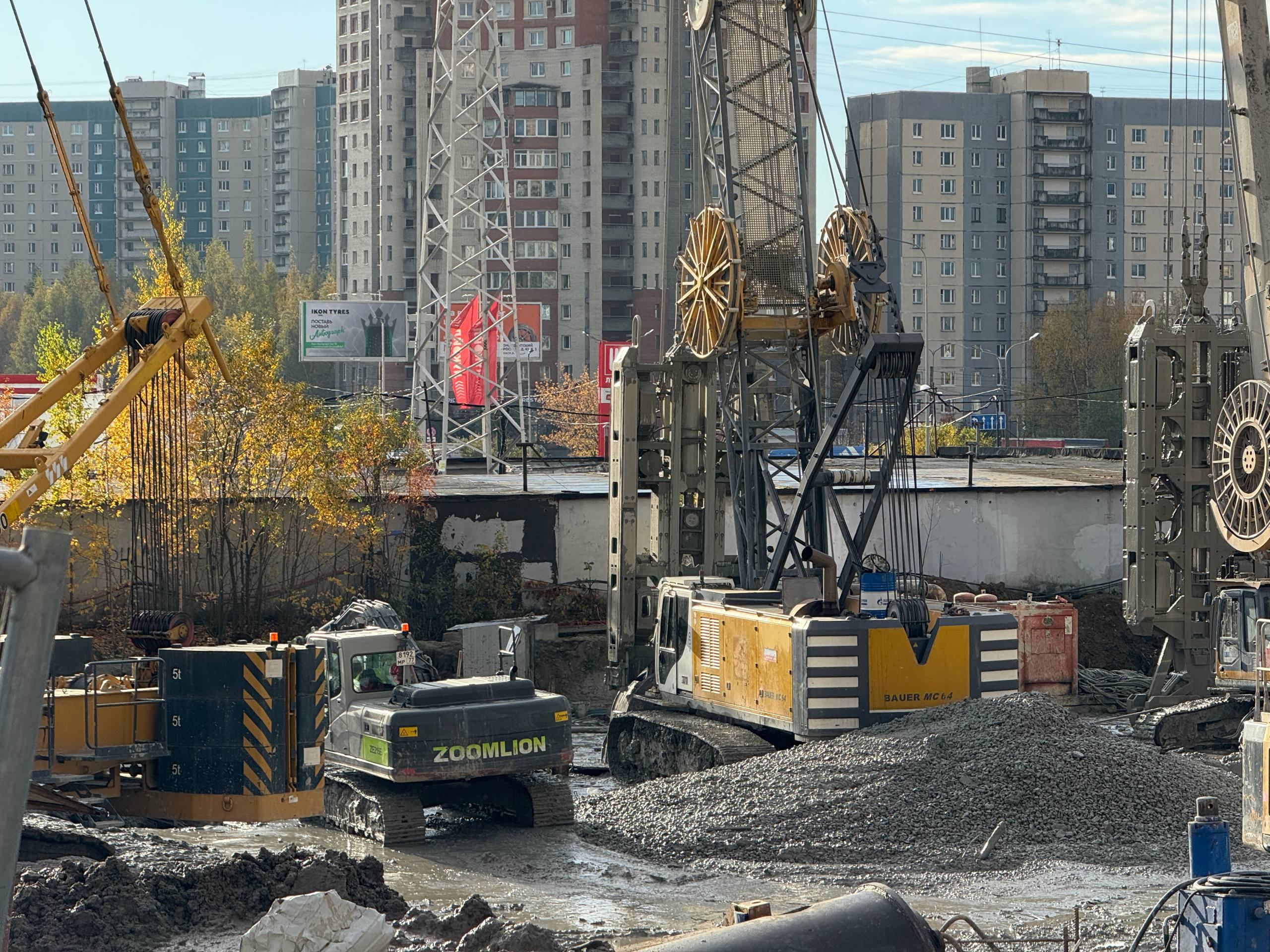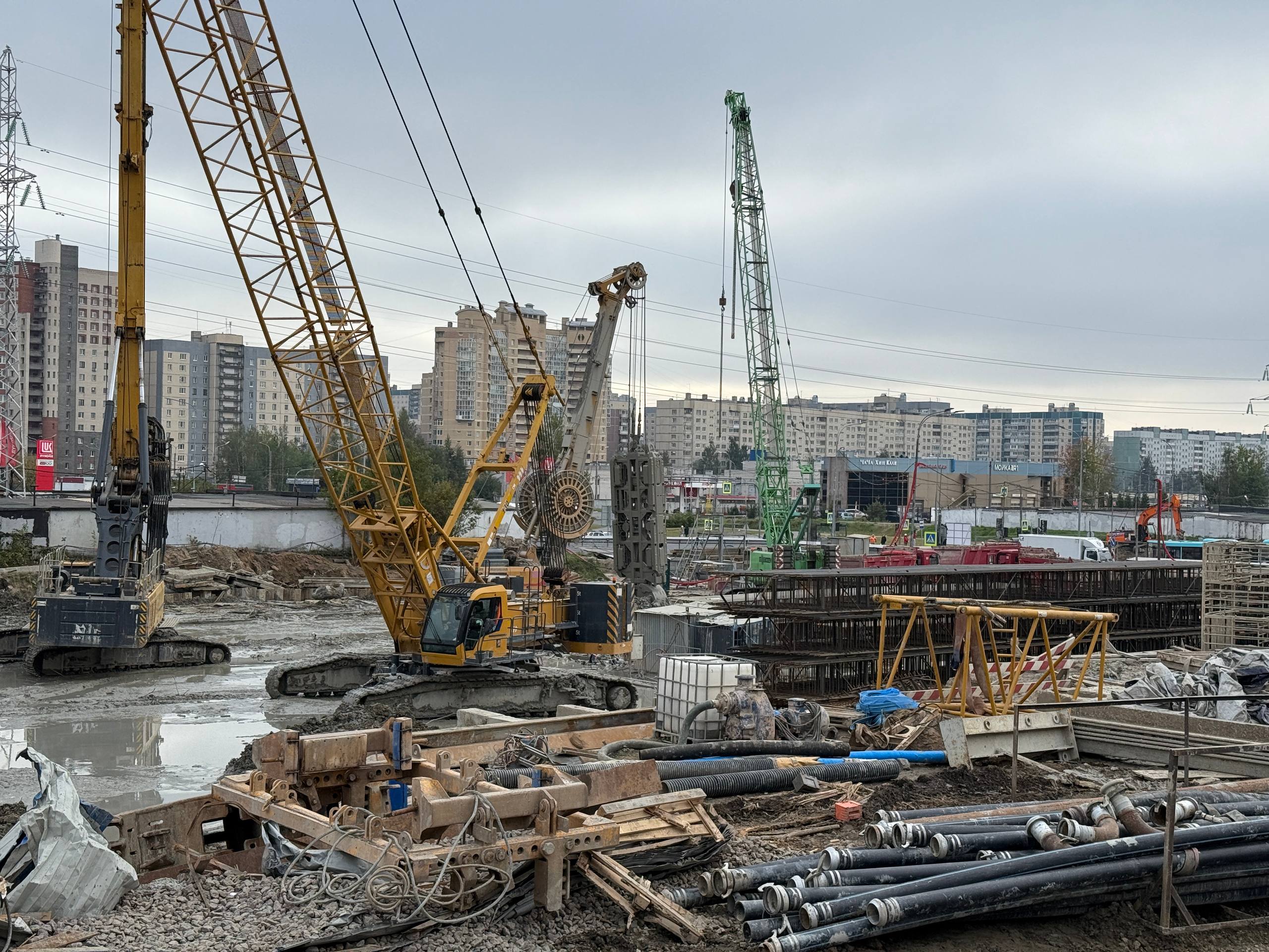 На разделительной полосе Шуваловского проспекта также ведётся сооружение форшахты входной торцевой стены станции.