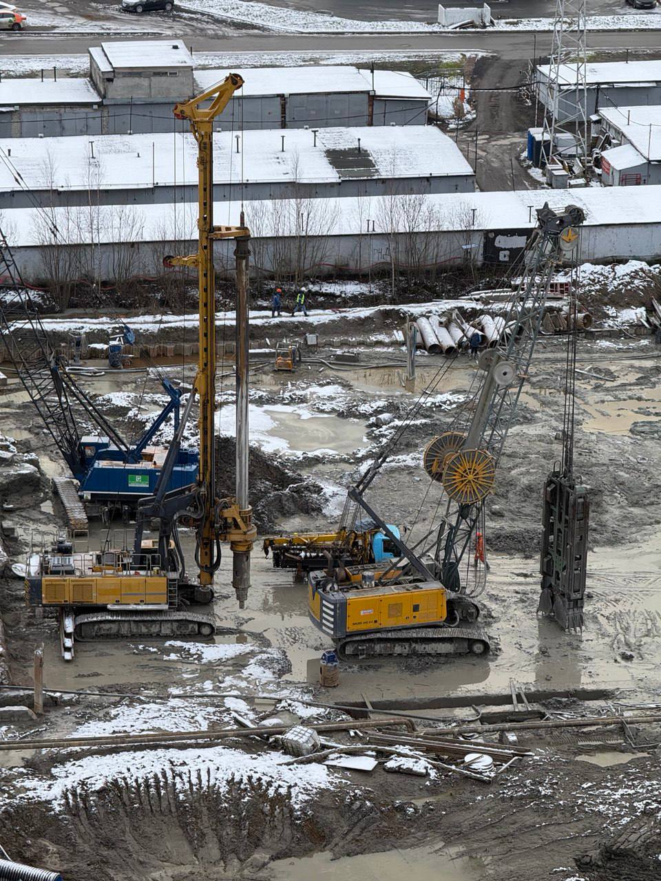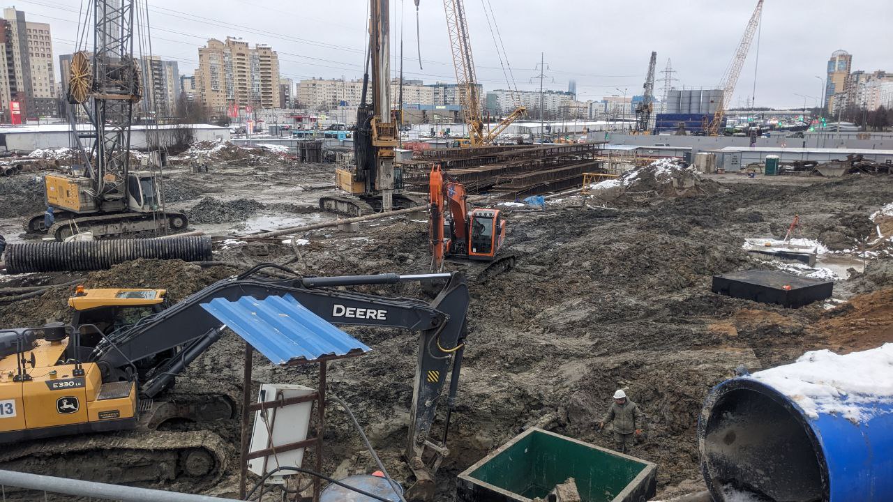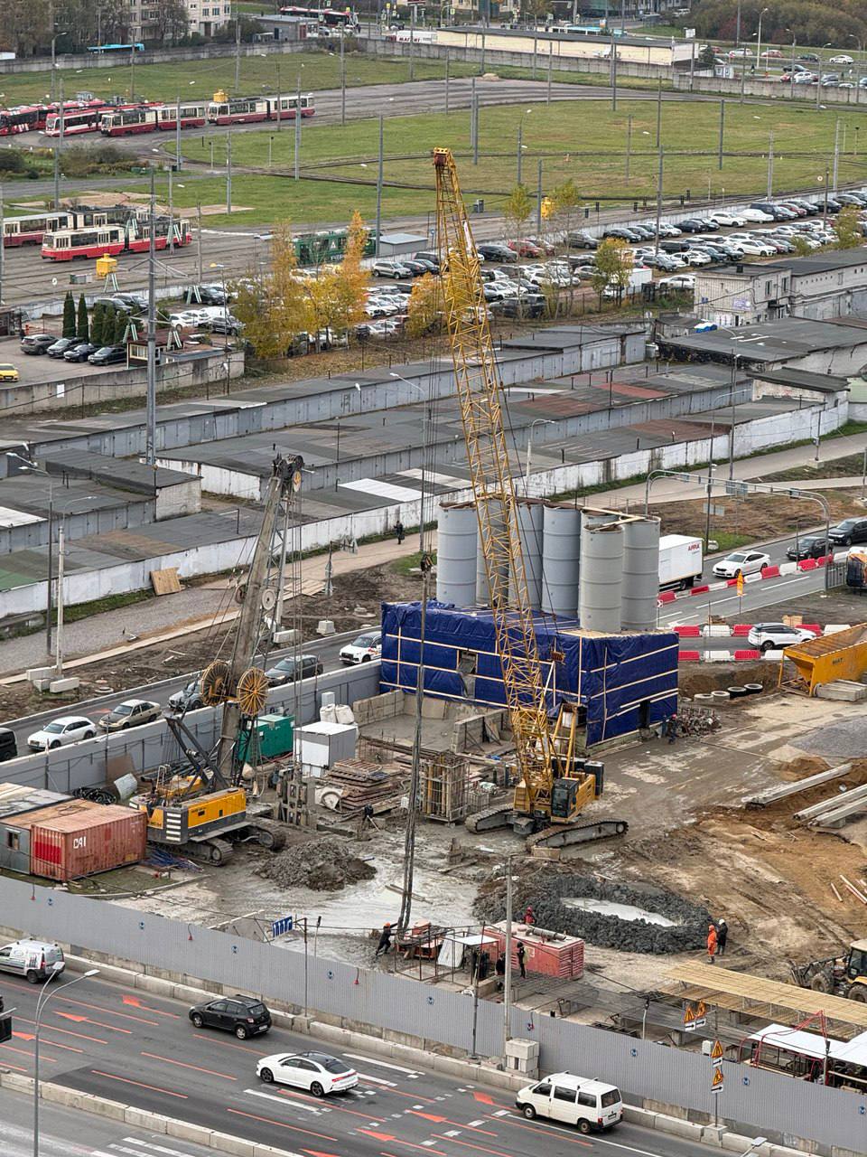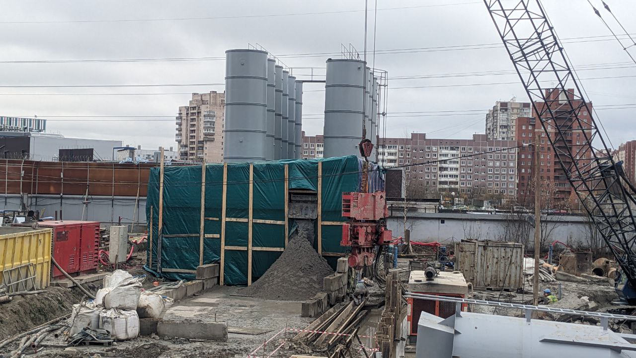 Выполнены работы по устройству форшахты. На данный момент сооружены 2 из 8 заходок торцевой стены по технологии «стена в грунте» (СВГ) — ограждающей конструкции котлована будущей станции. Ширина заходок составляет 1 метр, длина — 2 метра, глубина — 36 метров. По мере того как грейфер выкапывает траншею (заходку), её заполняют бентонитовым раствором, чтобы стенки не осыпались. Затем в эту траншею опускают предварительно заготовленные арматурные каркасы. После этого на дно заходки опускают бетоновод, и бетонную смесь укладывают снизу вверх. Вытесняемый бентонит собирают, очищают и используют повторно, добавляя свежий раствор.