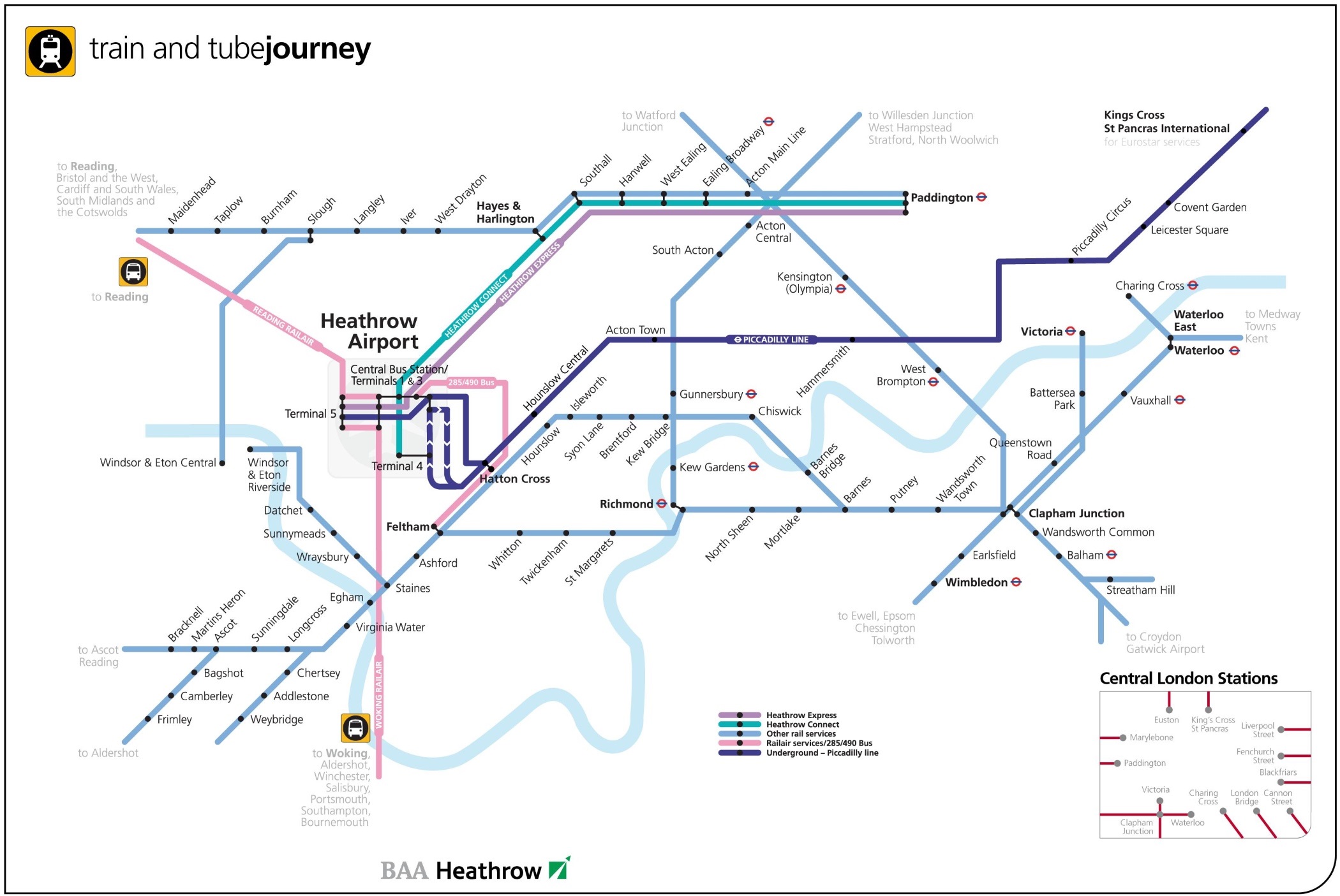 Поезда Siemens Heathrow Express обеспечивают скоростное сообщение с вокзалом Paddington
