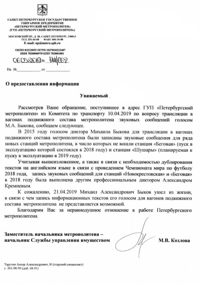 Коллектив Петербургского метрополитена выражает глубочайшие соболезнования родным и близким Михаила Александровича.