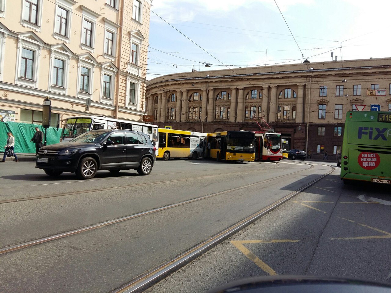 На повороте с Московского проспекта на первую Красноармейскую замес из маршруток. Борьба за каждого клинта, каждую секунду. Понедельник не задался.