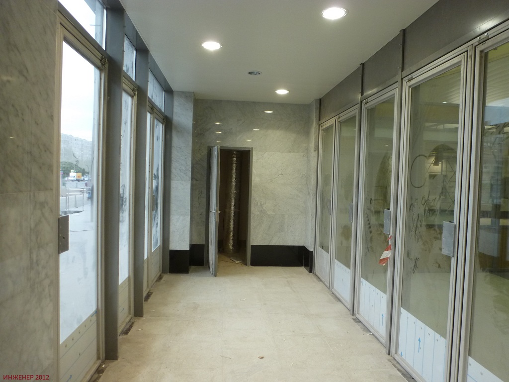 Вчера открыли супермаркет в ТК, все леса сняли. Через окна виден вестибюль, он почти сделан. Да и в самом ТК вроде уже практически отделан первый этаж.