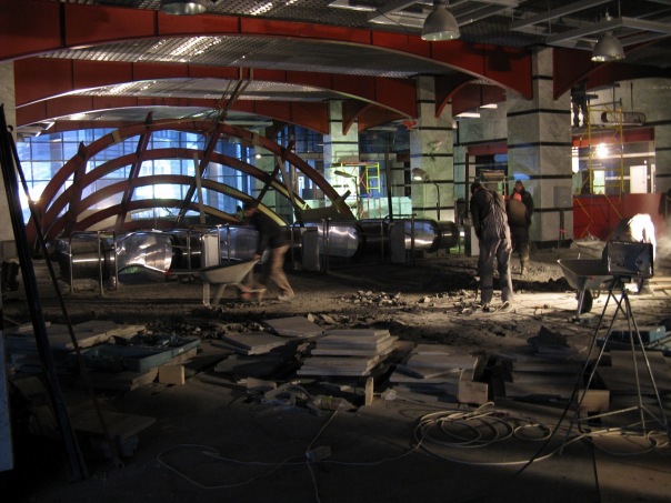 Правда по последним фоткам дизайн нижнего вестибюля кажется каким-то непонятным, неоднородным. Надеюсь, с пуском станции, все изменится в лучшую сторону. Хотя этот НИП...