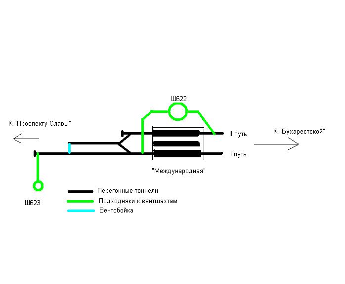 Подходняк от вентшахты 623 будет выходить на I путь. Его удлинят на 239 метров от ныне существующего забоя. Будет сооружена вентсбойка конца среднего тупика с I путем. II путь будет заканчиваться сразу за камерой съезда, вентсбойку с ним сделают когда будут его удлинять, видимо уже на 3-ей очереди.
