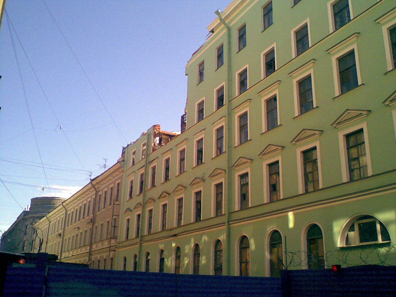 От старого дома осталось очень и очень мало. После войны он был значительно перестроен. Версия о некоторой группе блокадников, которой этот дом дорого мне кажется несколько натянутой. Скорее это было сделано именно для затягивания процесса сноса, чтобы успеть решить кто сносит и кто строит.