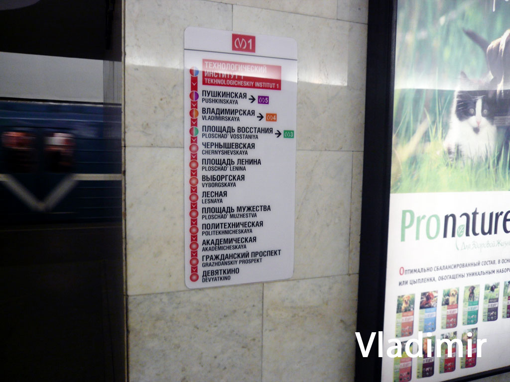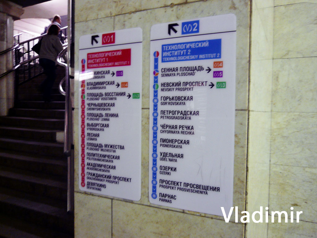 vladimir, т.е. вас не смущает, что у нас одна и та же станция - одновременно и ТИ-1, и ТИ-2? Причем и колонная, и пилонная станции - обе такие? Мне всегда казалось, что колонная - это ТИ-1, а пилонная - ТИ-2. И в данном случае номер станции никак не связан с номерами линий, все-таки, нумерация больше связи с наклонниками имеет. Собственно людей это и забавляет - станция одна, а названий у нее выходит два. Уж если пишут на указателях номера, писали бы их корректно. А лучше, конечно, вообще бы не писали: ваша последняя фотка наглядно демонстрирует идиотизм подобной нумерации.