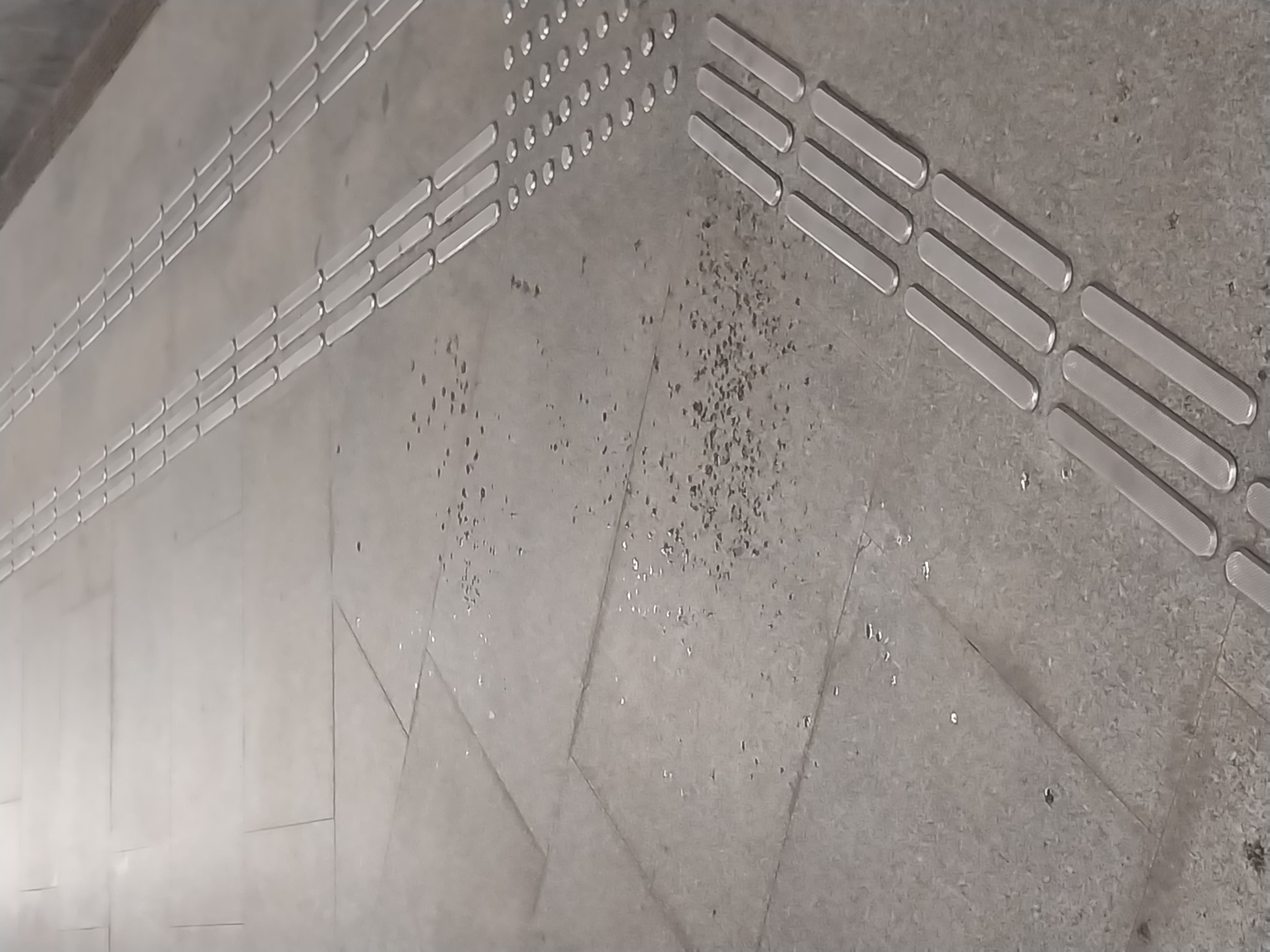 В некоторых местах (а именно небольшая лужица была обнаружена на полу возле первого пилона со стороны выхода в сторону оборотного тупика, далее две "капельные" лужицы были в коридоре, соединяющий вход/выход и два подземных прохода, а над этими лужами на потолке одна капелька свисала, ну и в некоторых местах по пару капель тоже имеется) были найдены следы протечек, проявившихся на полу. Конечно вероятно это могут быть следы не от протечек на станции, а от обуви граждан, так как недавно прошёл дождь по всему городу.