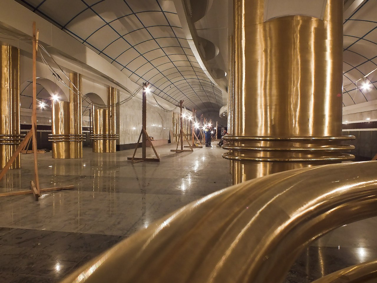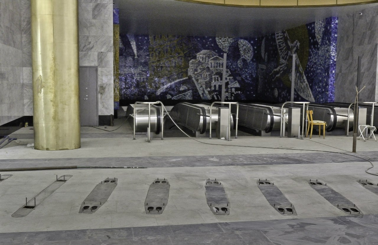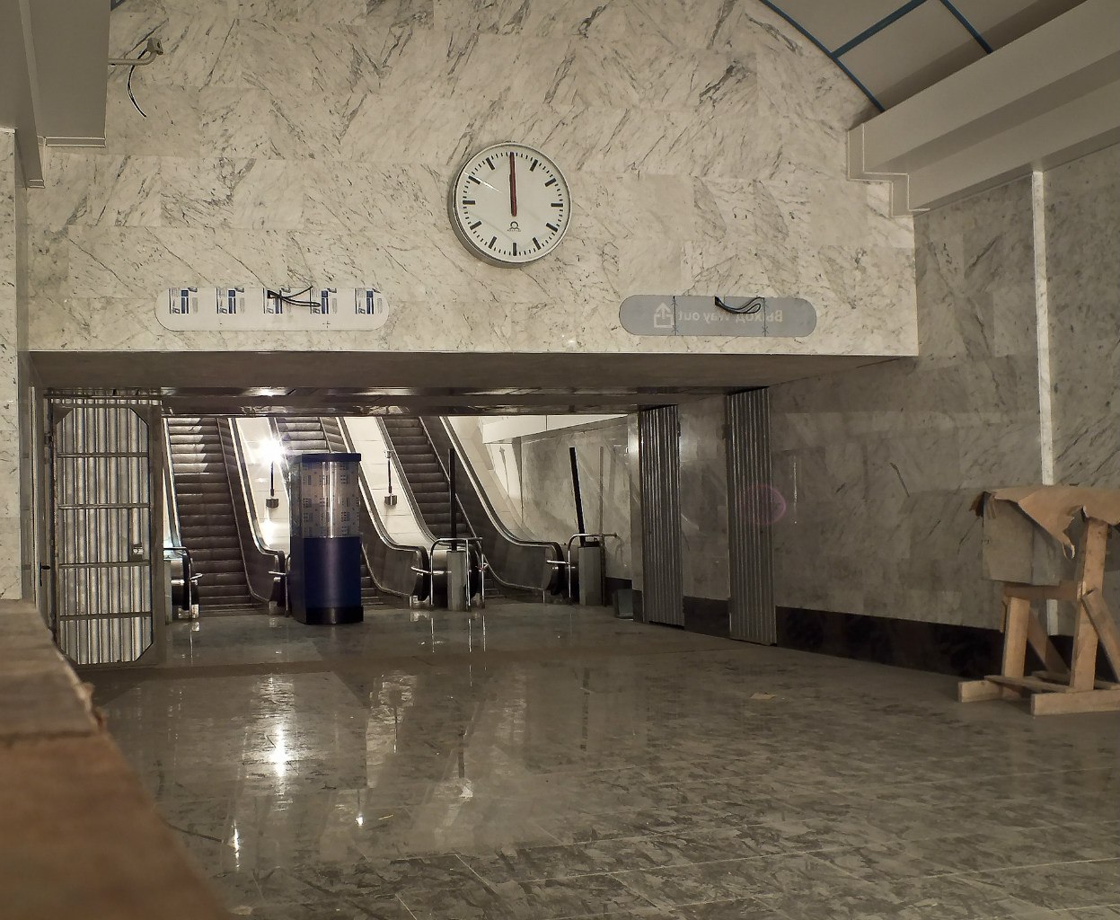 Нет, движение эскалаторов, будет левосторонним (английским) — это видно из положения касс в вестибюле (фото проскальзывали раньше в этой теме). Что же касается последней фотографии из предыдущего поста, то либо она сама зеркальная, либо таблички не так прицепили. Если откроете в полный размер то увидите, что на правой табличке написано «tuo yaW дохыВ».