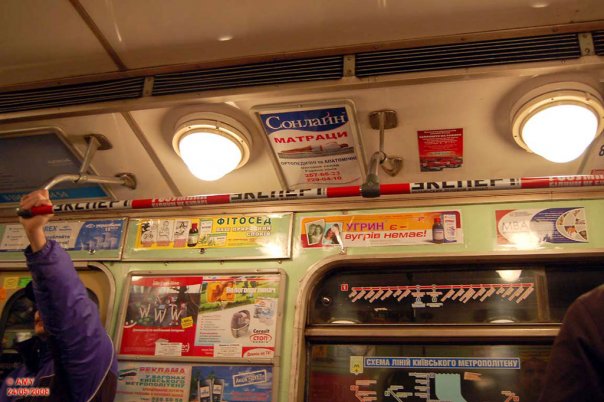 тут уже не об эстетике даже речь (от нее одни останки), а о здравом смысле... это рекламный "перегруз" (не знаю, как это называется профессионально) - информация перестает восприниматься, начинает раздражать одним своим присутствием... обклееные колонны и пилоны и салоны вагонов до такой степени, что схему на окно лепят - это трэш лютый, конечно... понимаю еще, такую рекламу заказал бы только-только раскручивающийся бренд, но неужели без такого "оверкилла" забудут о Нескафе? глупо как-то, я конечно не рекламщик, но на мой взгляд, это неэффективная реклама... причем, если Киевский метрополитен продает рекламные места дорого, то неужели крупным брендам не жалко денег на такую туфту? а если дешево, то походу Киевский метрополитен живет нищебродской логикой - хоть копеечку, но заработаем... не знаю, пусть украинцы обидятся, но я бы повысил тарифы процентов на 50-100, чем такое убожество устраивать на станциях и внутри вагонов...