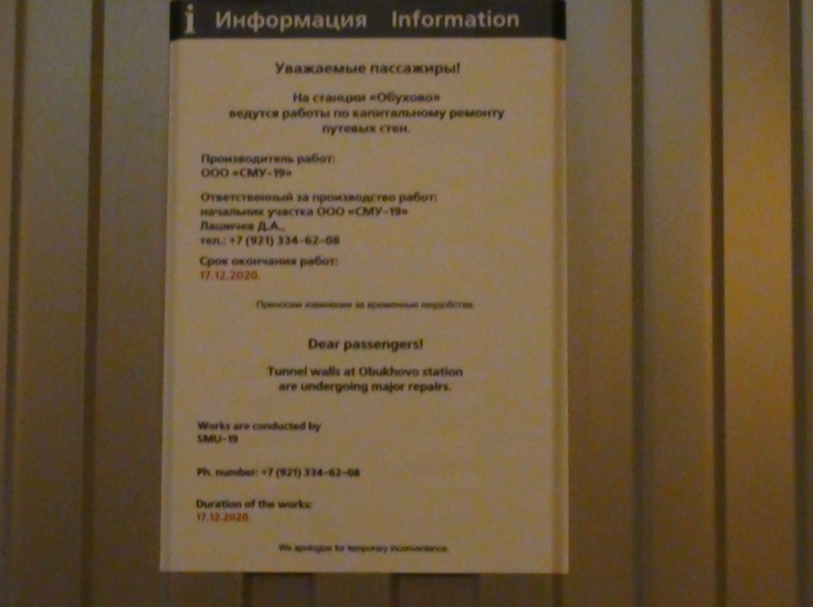 О! Я смотрю, на Обухово картина полностью аналогичная Новочеркасской, только на НЧ уже почти весь нижний ряд плитки снят.